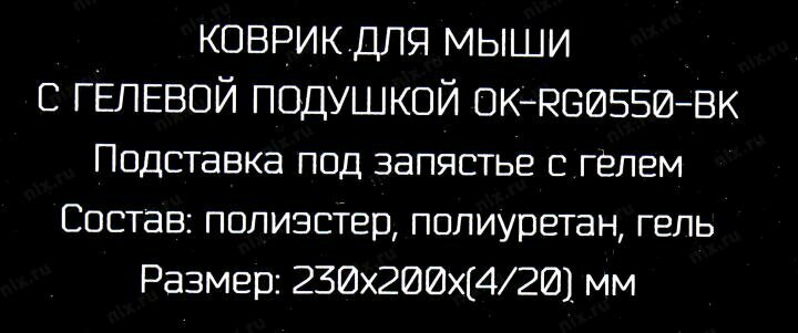 Oklick (ok-rg0550-bk) Коврик для мыши с гелевой подушкой под запястье (1088636) .
