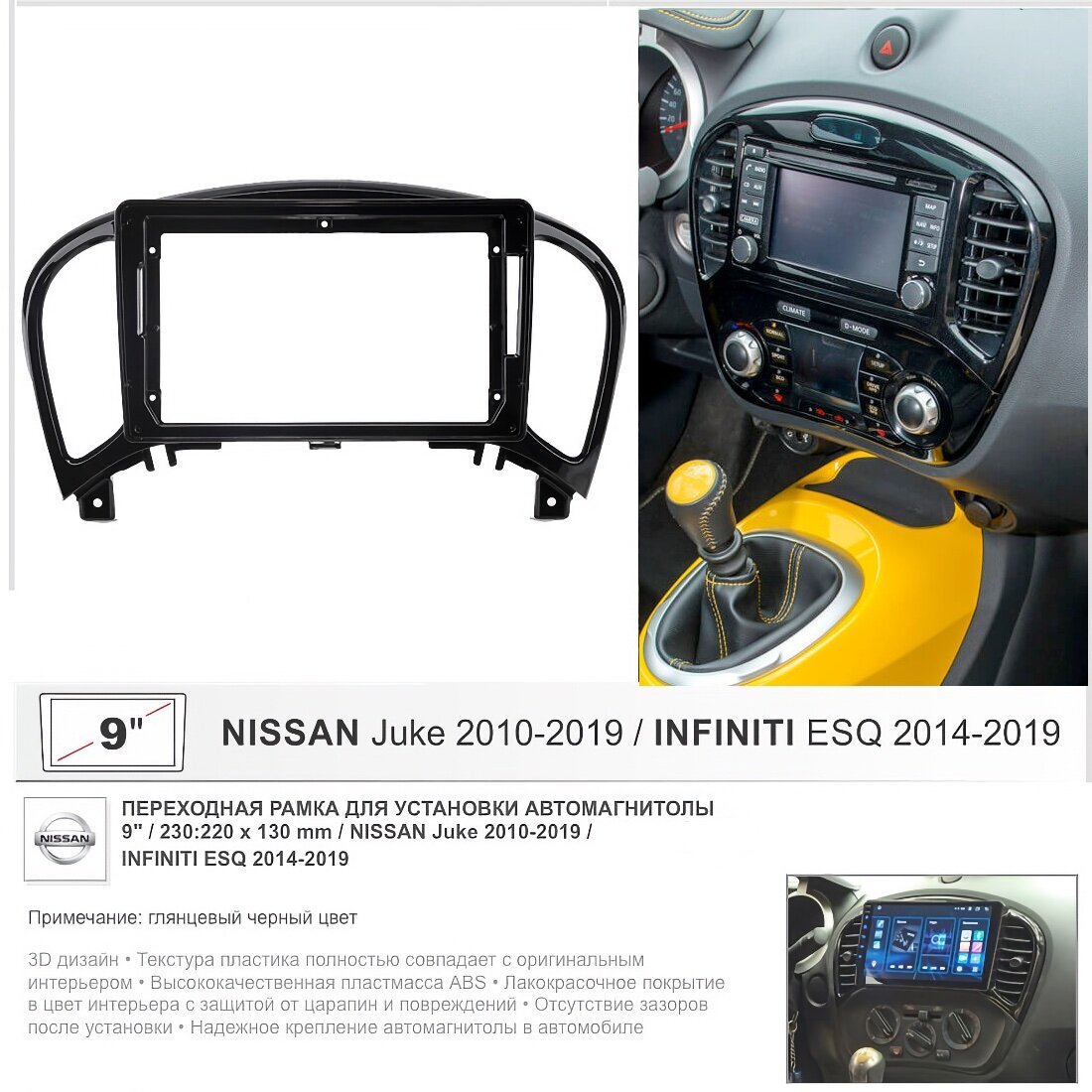 Переходная рамка Nissan Juke 2010-2019 / Infiniti ESQ 2014-2019 , 9" дюймов интересное: