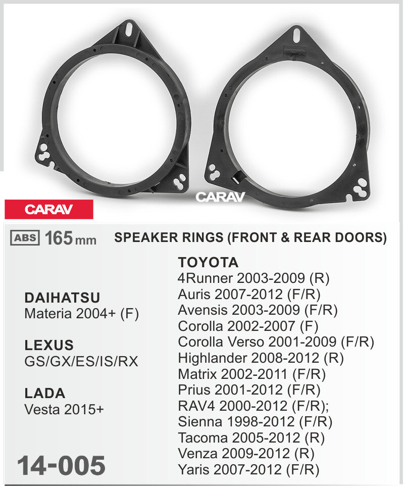Проставочные кольца для установки динамиков для TOYOTA 2003-2012 / LEXUS передние и задние / 165 мм CARAV 14-005 интересное: