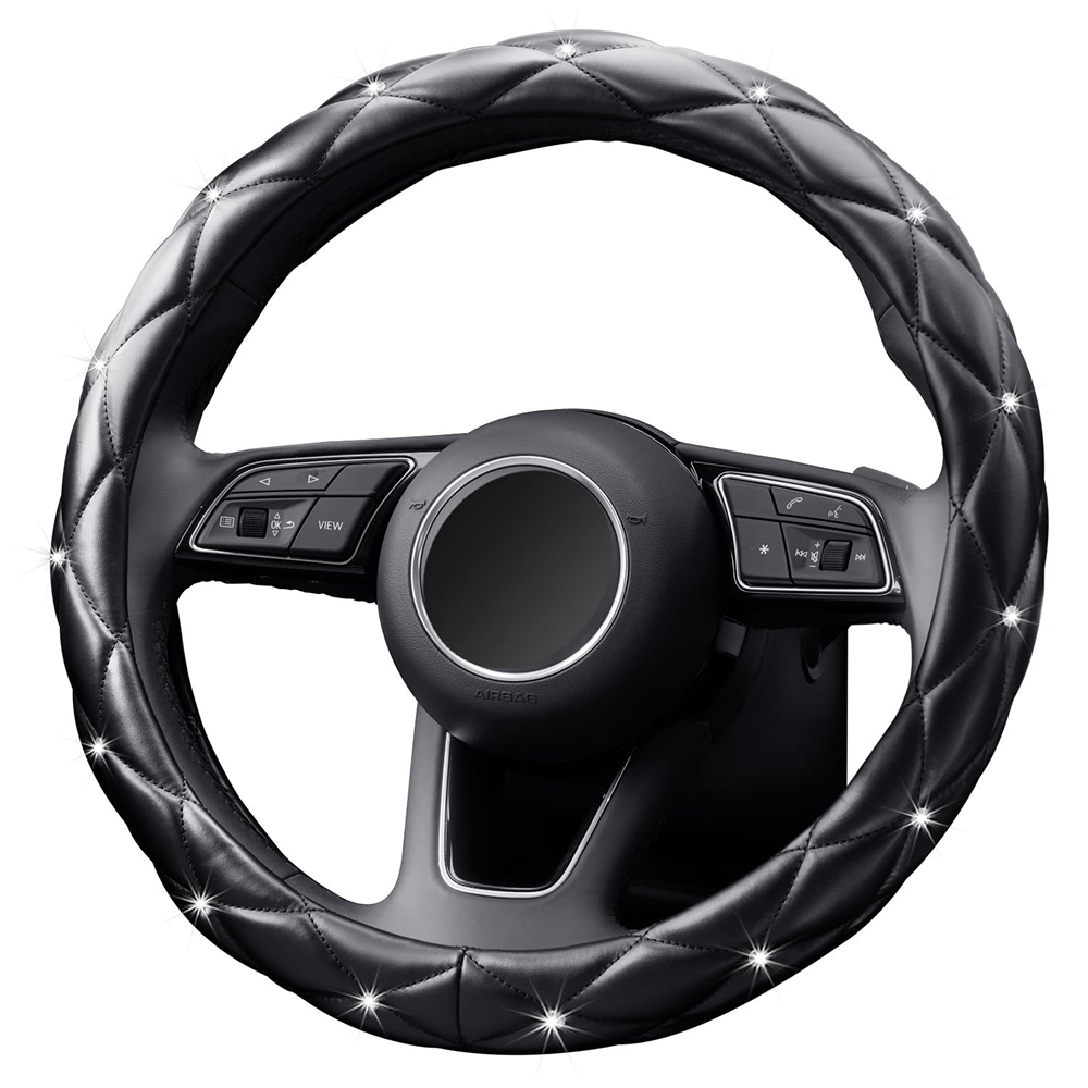 Оплетка на руль чехол NG Parts, автомобильный чехол накладка на руль, черный для девушек 37-39 см.