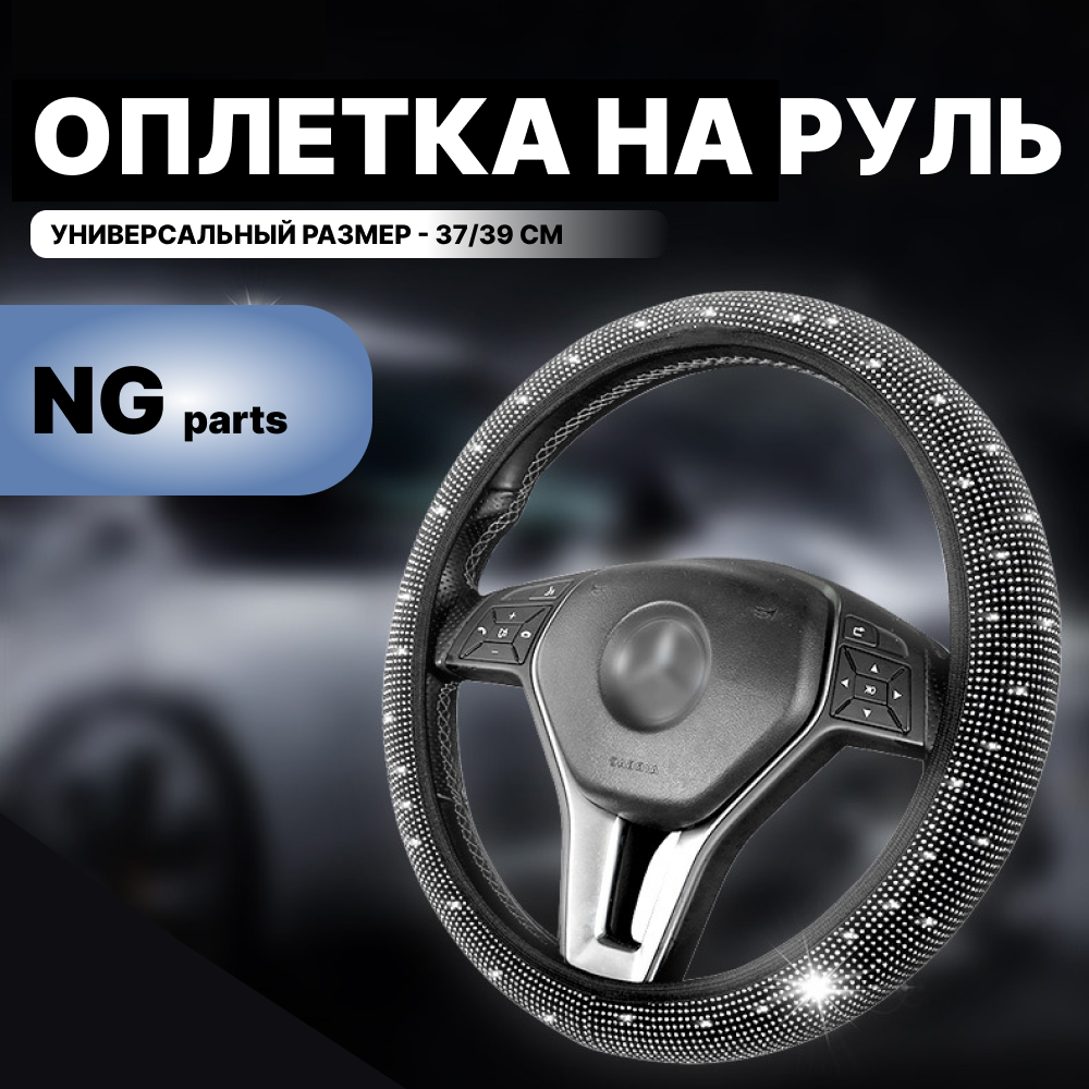Оплетка руля NG Parts, автомобильный чехол накладка на руль, черный для девушек 37-39 см. интересное: