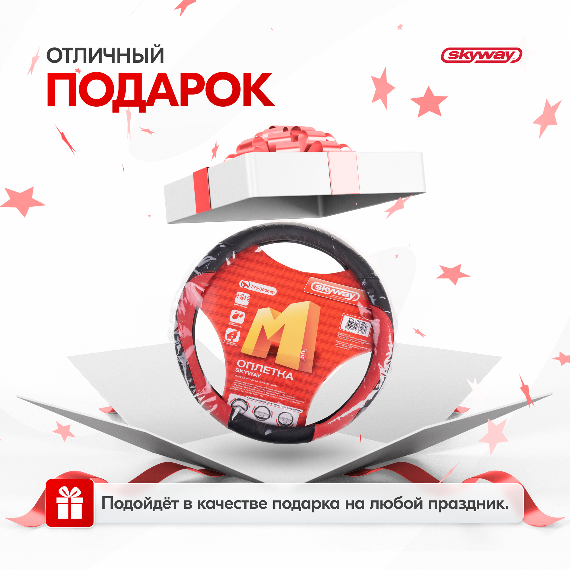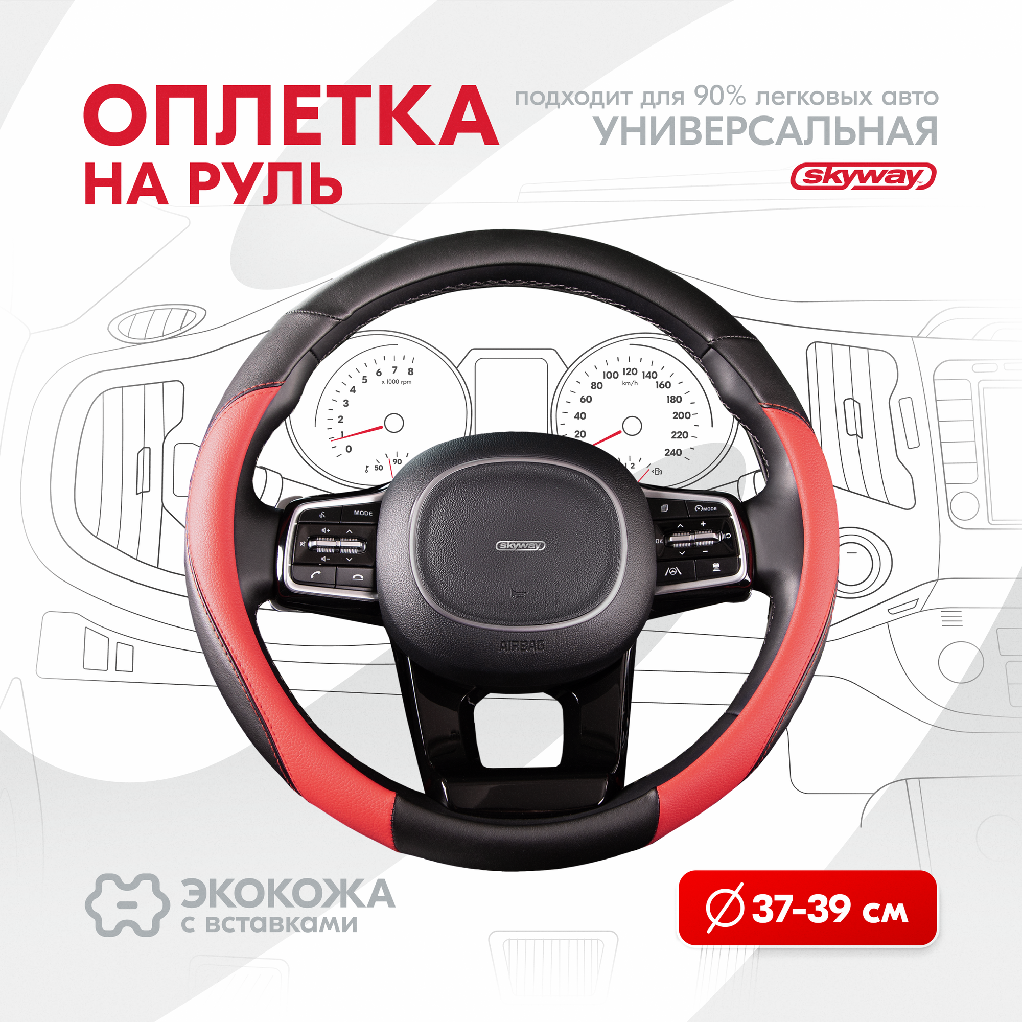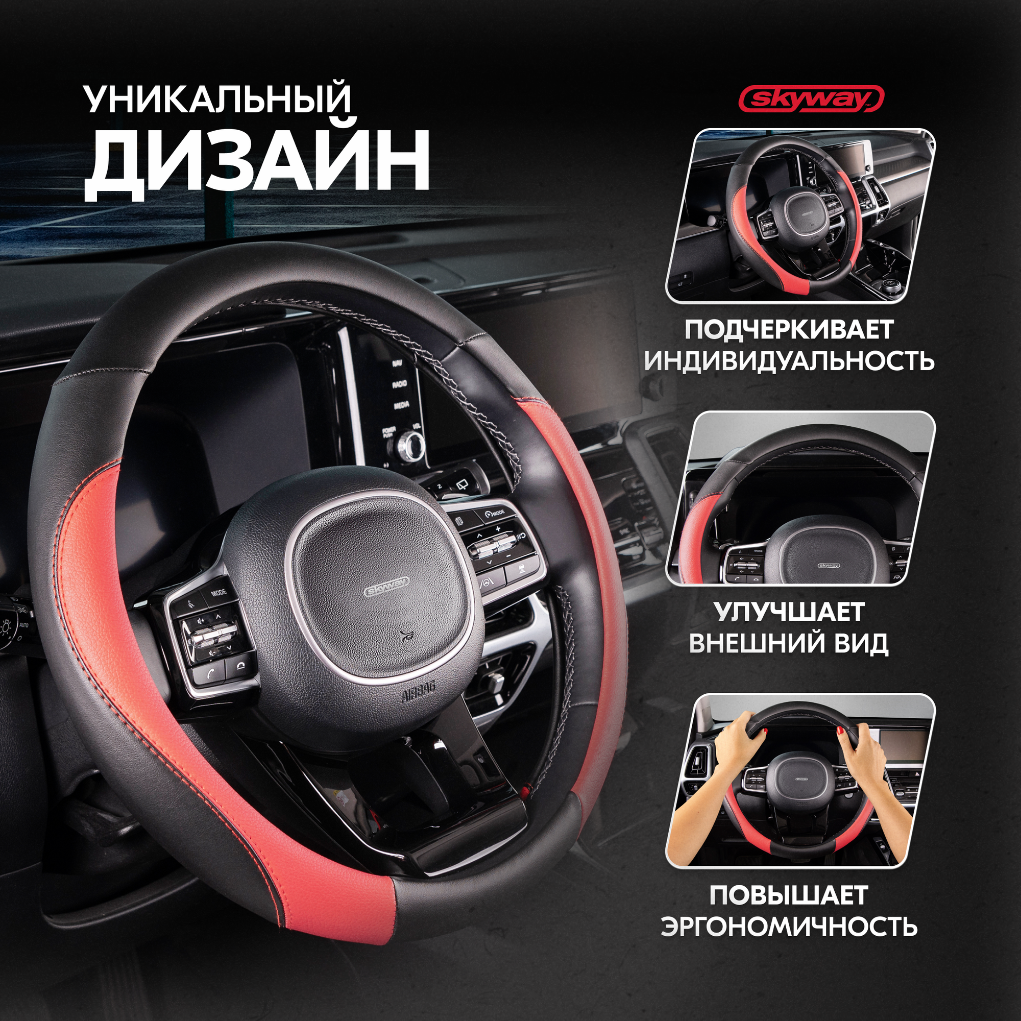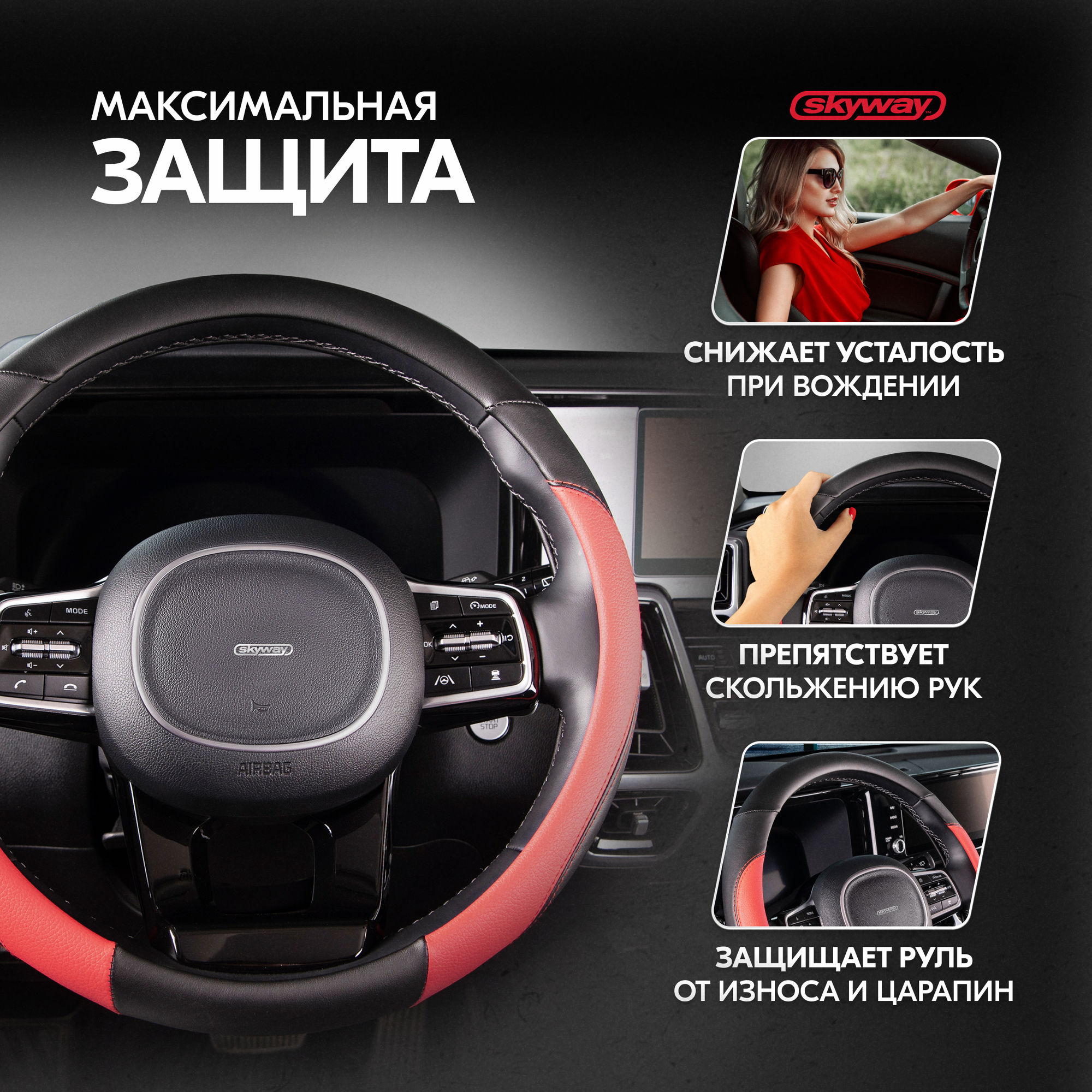 Оплетка руля SKYWAY Combo 6, экокожа, M, 37/38/39см, черный/красный, S01102292 интересное: