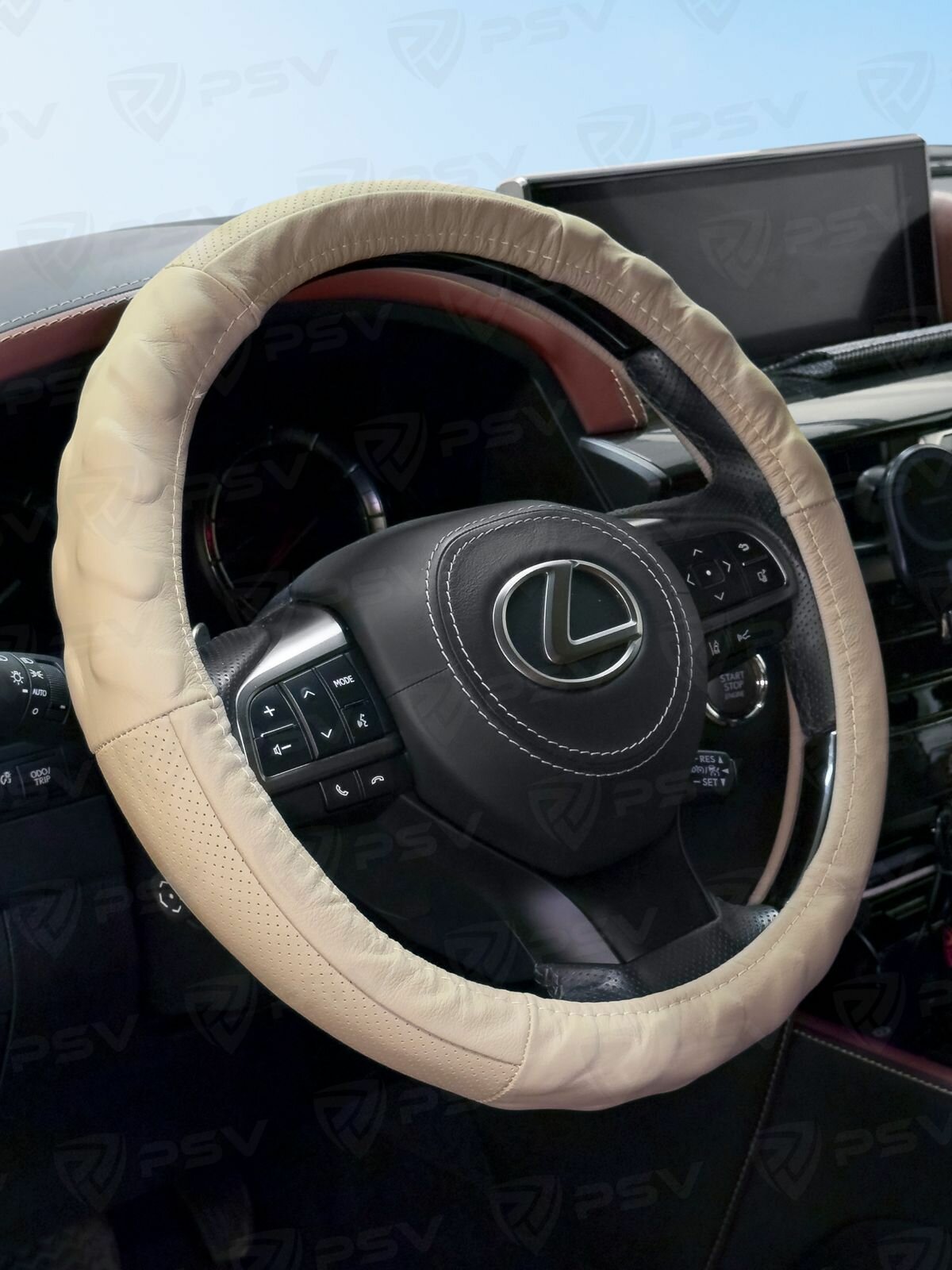Купить Чехол на руль оплетка из натуральной кожи PSV BUMP (Бежевый), размер M 37-39 см