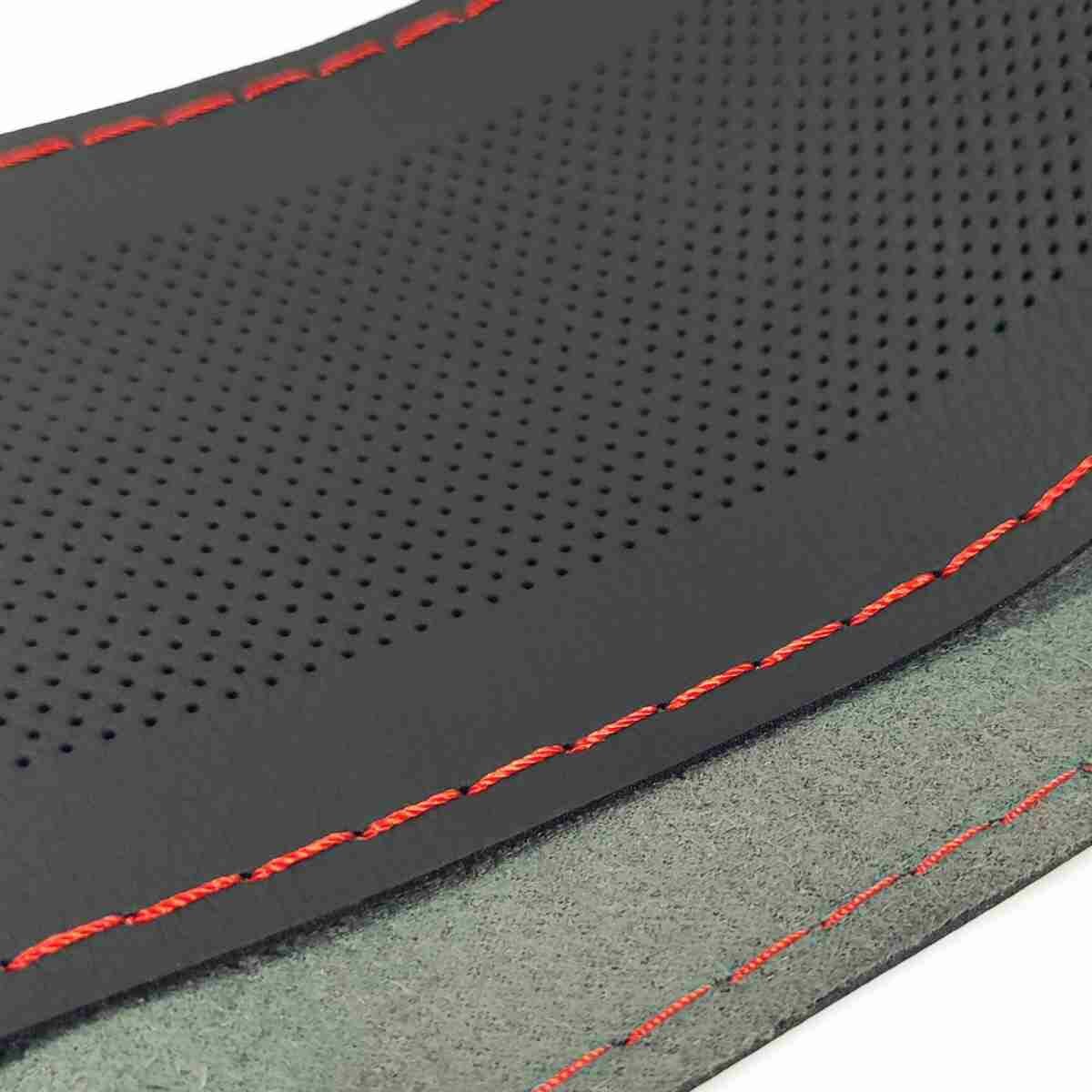 Купить Оплетка на руль универсальная из экокожи «DESIGN K10» М 37-39 см (чёрная, строчка красная) belais #21975