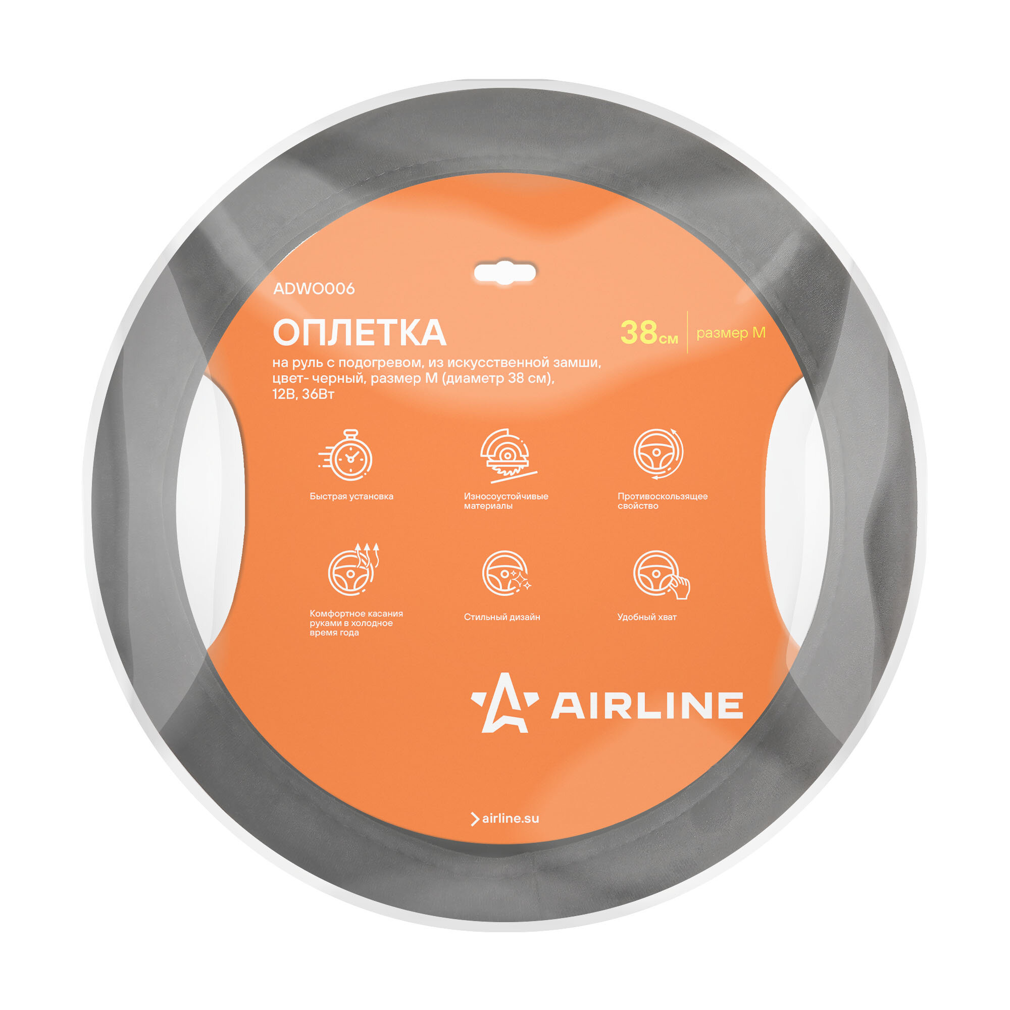 Оплетка на руль с подогревом, 12В, 36Вт, искусств. замша, черная, 38 см/М (AIRLINE) интересное:
