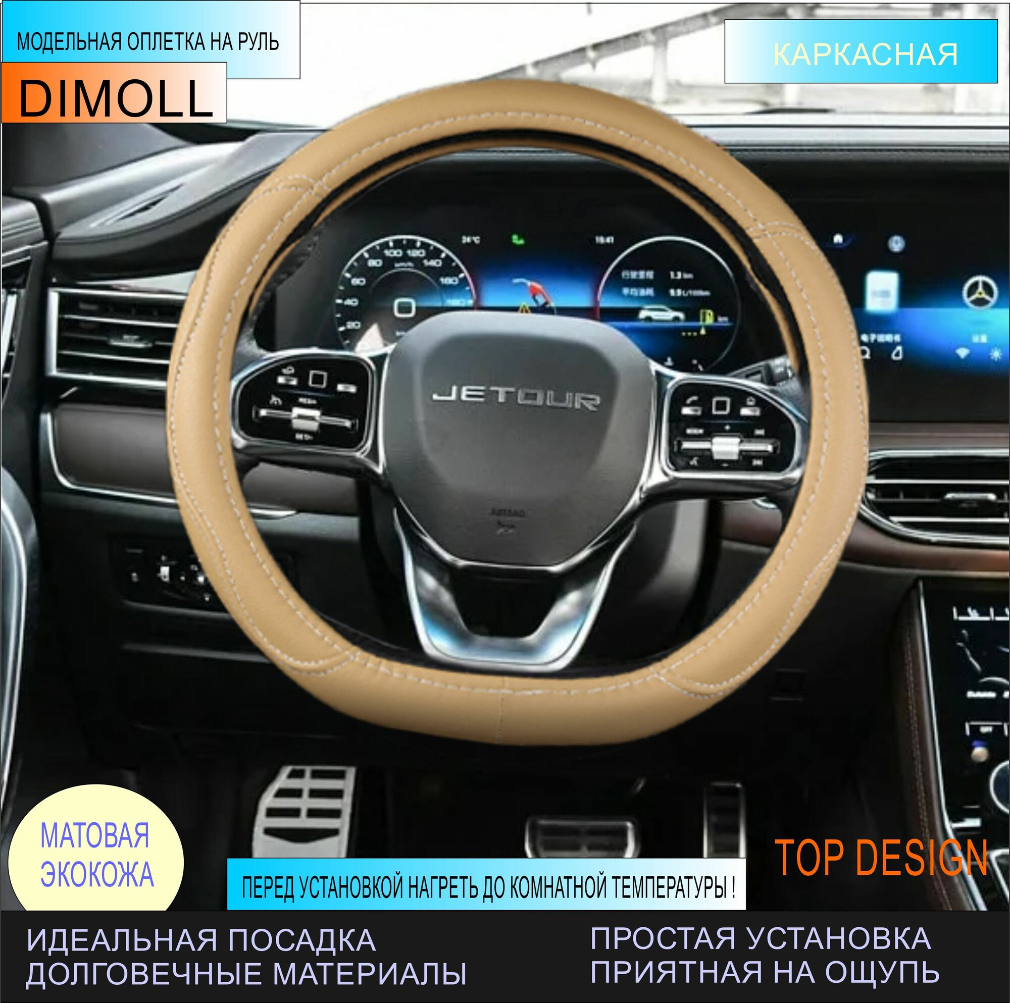 Купить Оплетка Jetour X70 PLUS 2020 - н. в. / Чехол на D-руль экокожа бежевый (каркасный, 37-38см)
