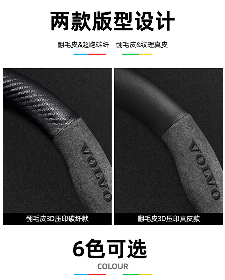 Чехол на руль, для Volvo XC60/S90/XC90/S60/XC40/S40, кожаный, с мехом, цвет углеродное волокно