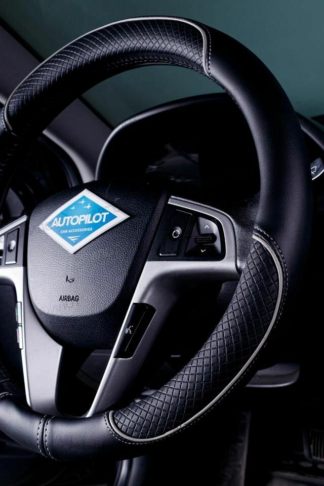 Оплетка на руль Top-12 SKYWAY M (37-39) серый экокожа, S01102501