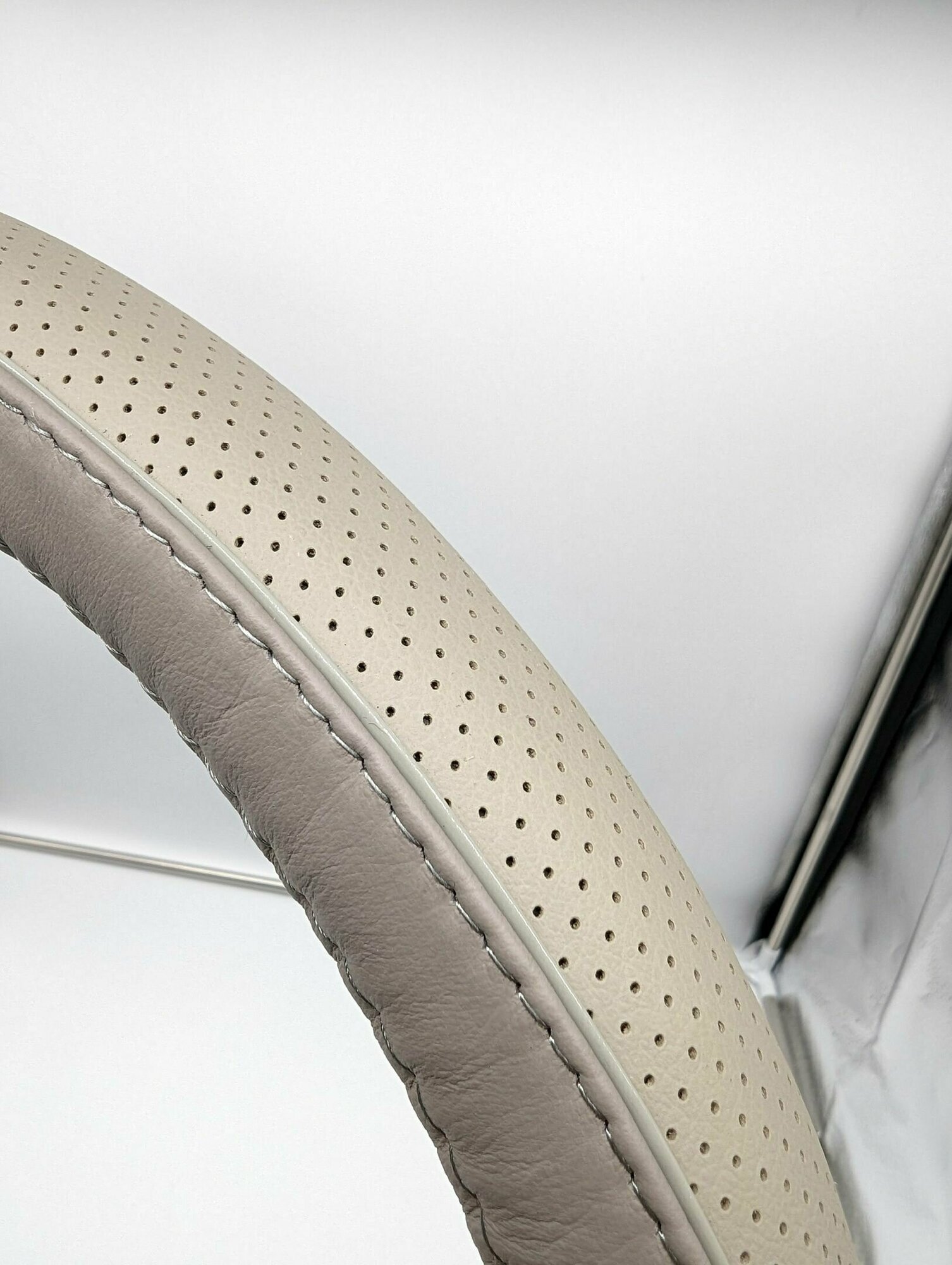 Купить Универсальный чехол оплетка на руль автомобиля из натуральной кожи бежевая size M(37-38 см)