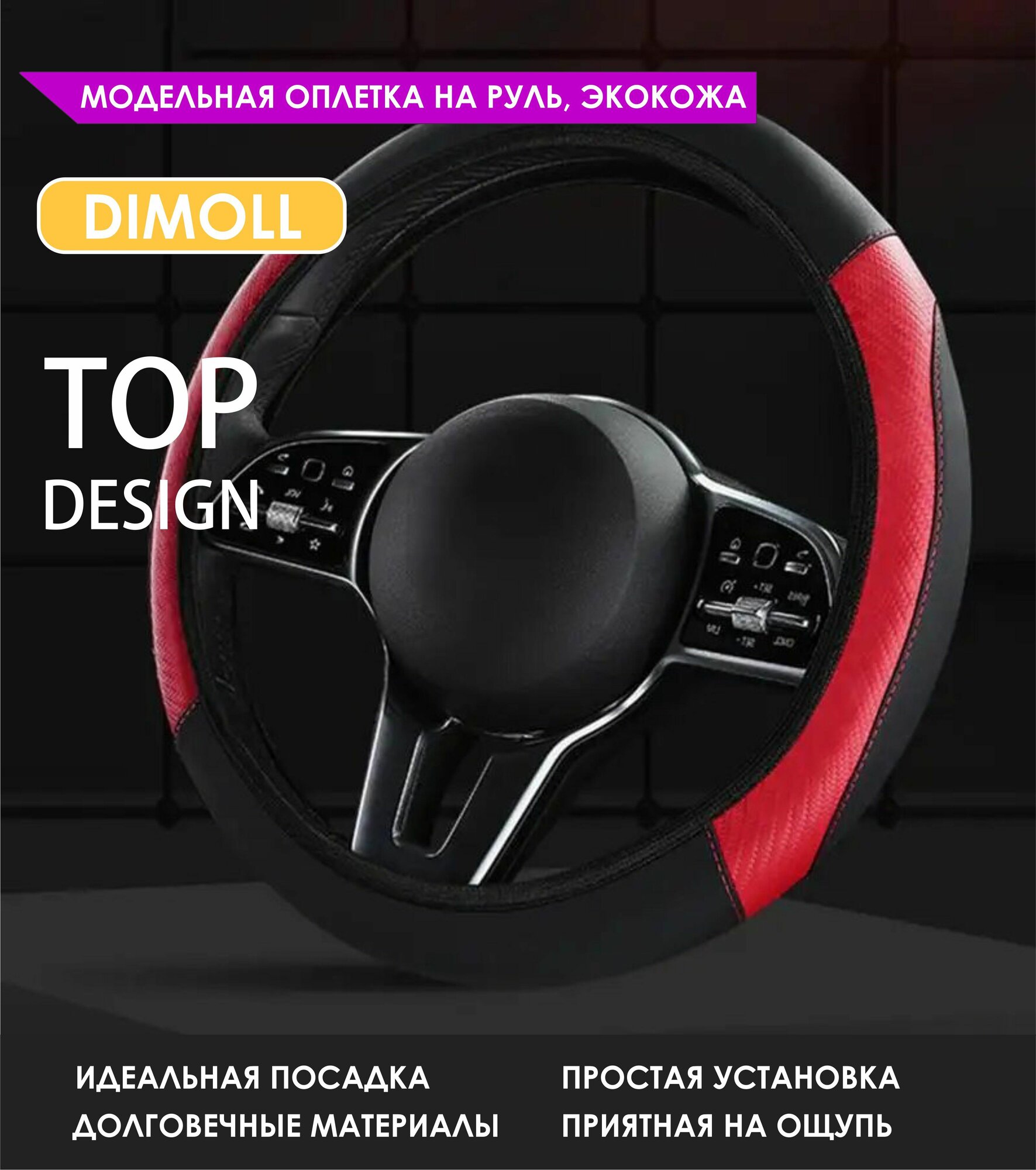 Оплетка (чехол) на руль бескаркасная 37-38 см Nissan Expert 1999 - 2006 экокожа, черная, с красной строчкой