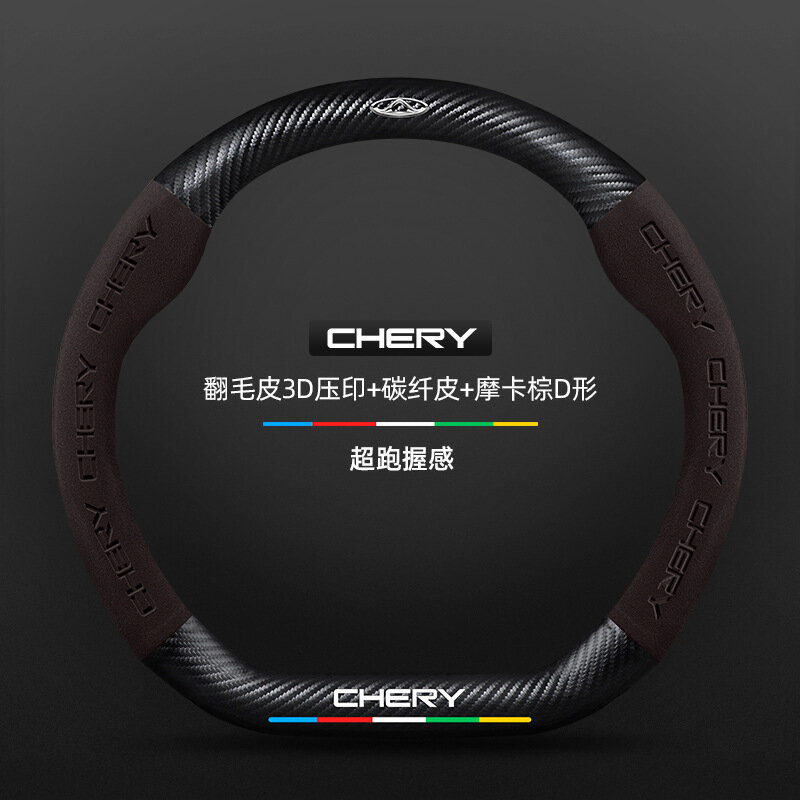 Чехол на руль Chery, углеродное волокно, мех, коричневый, D-логотип интересное: