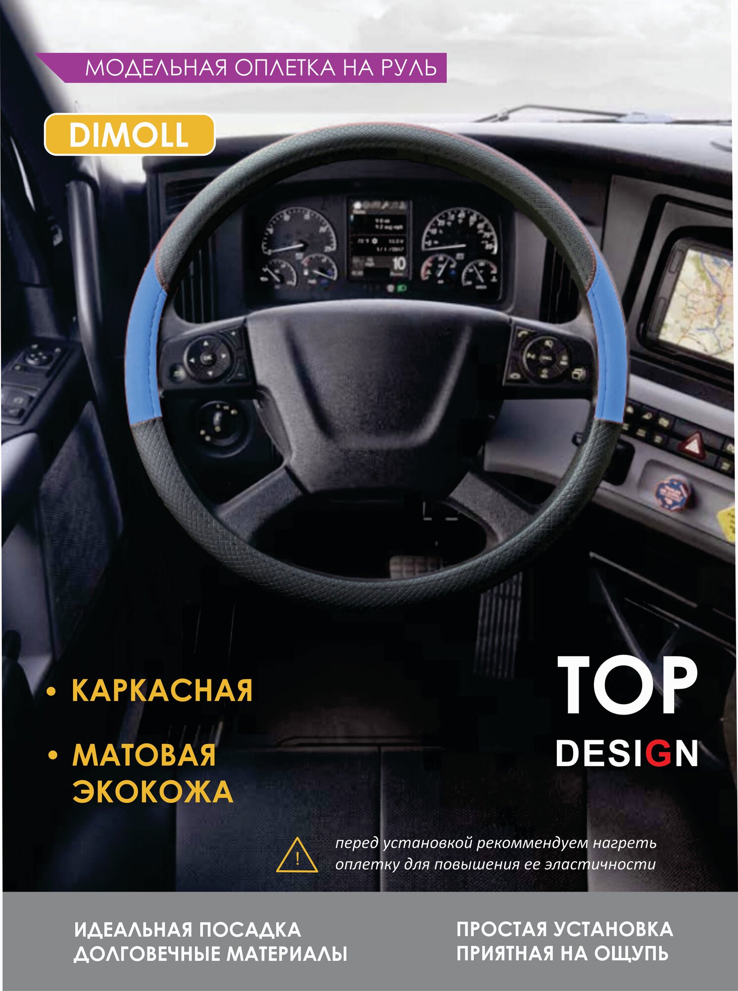 СохранитьОплетка (чехол) на руль 49-50 см для CAMC AH3202 экокожа, каркасная, черная, синяя голубая вставка интересное: