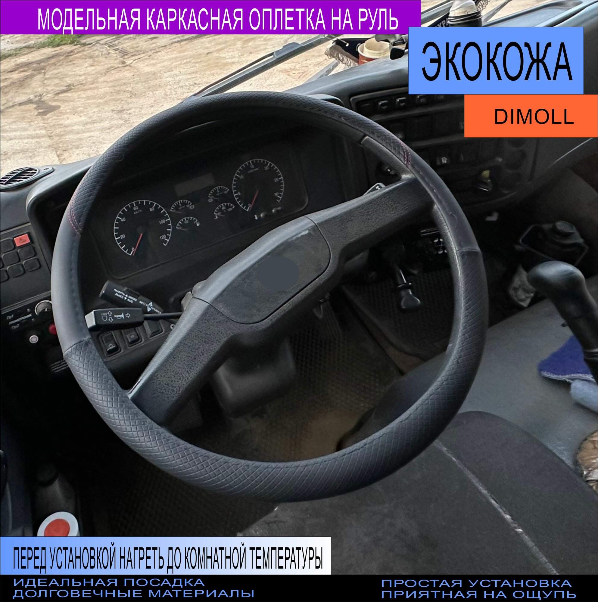 Оплетка GMC SIERRA 1500 / Чехол на руль экокожа черный (каркасный) 41-42см