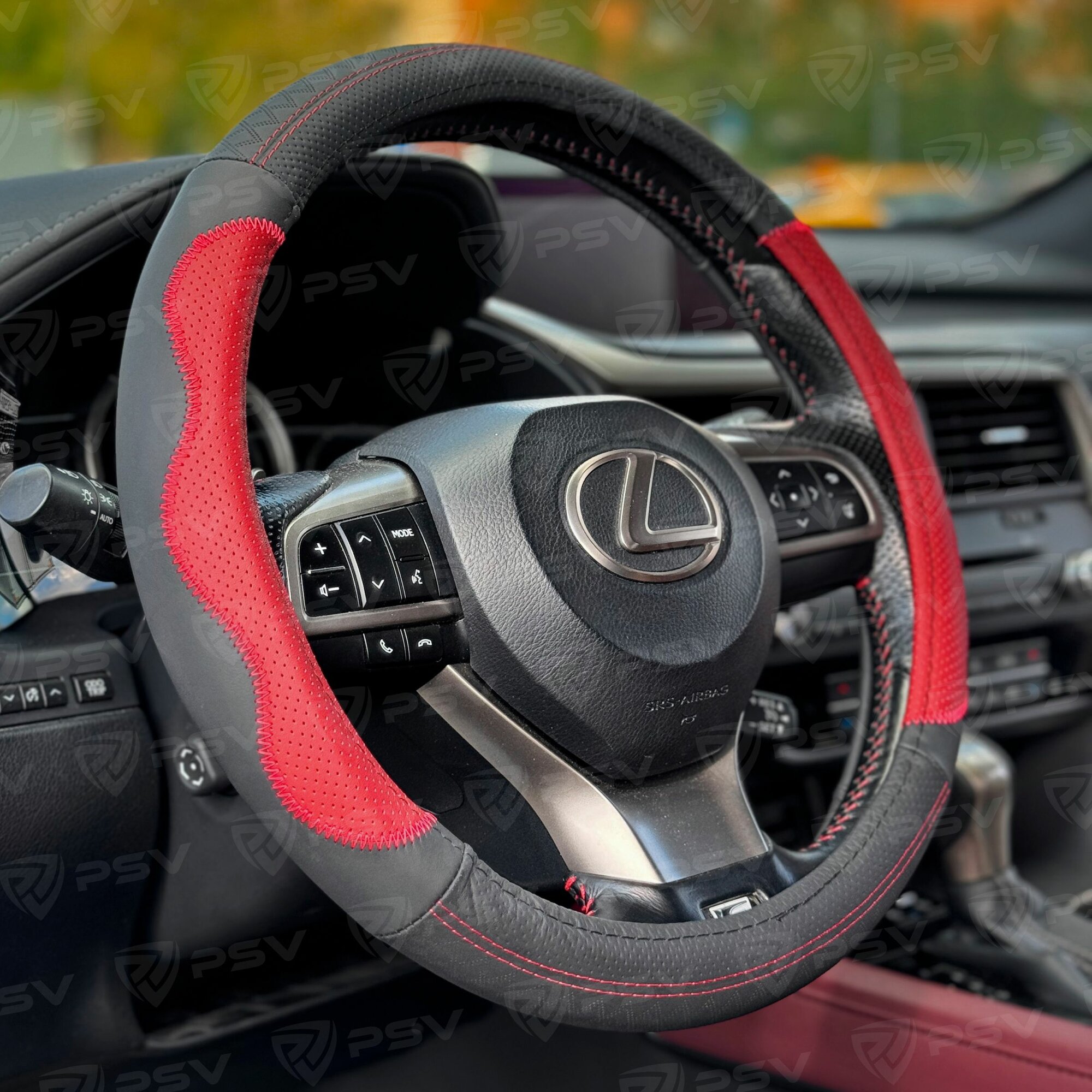 Купить Чехол на руль оплетка из натуральной кожи PSV KORONA (Черно-Красный), размер M 37-39 см