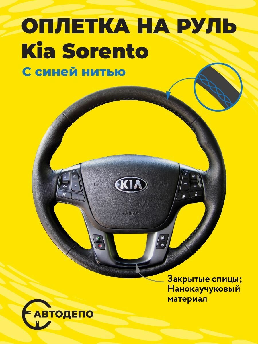 Оплетка на руль Kia Sorento для кожаного руля, черная кожа с синим швом. интересное: