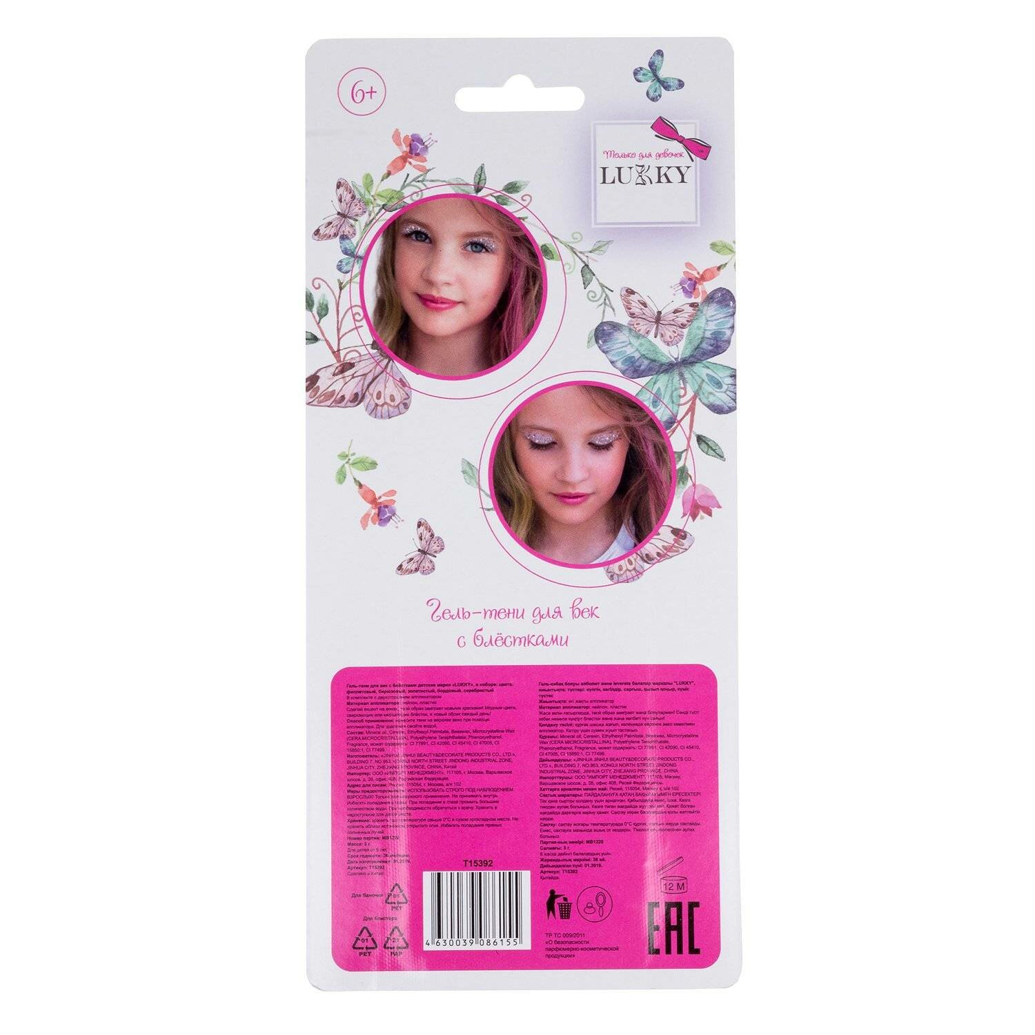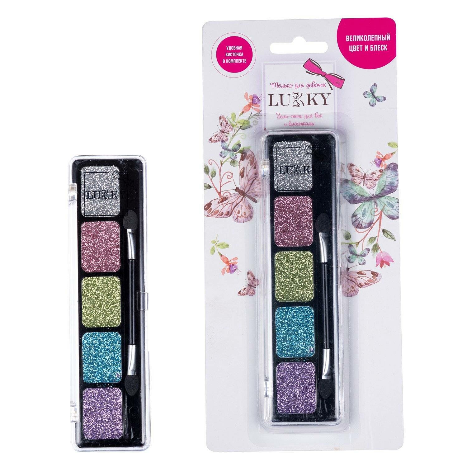 Lukky гель-тени для век с блёстками яркие цвета: фиолетовый, бирюзовый, золотистый, бордовый, серебристый, 4,5 г, блистер 22х10 см