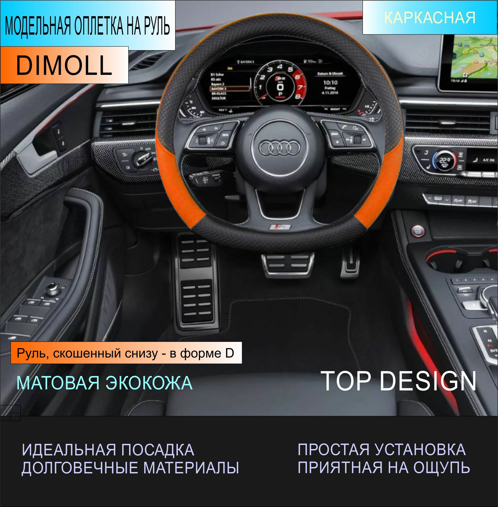 СохранитьОплетка Ауди Q3 8U 2011 - 2018 / Чехол на руль экокожа черный / оранжевый (D-образный) 37-38 см интересное: