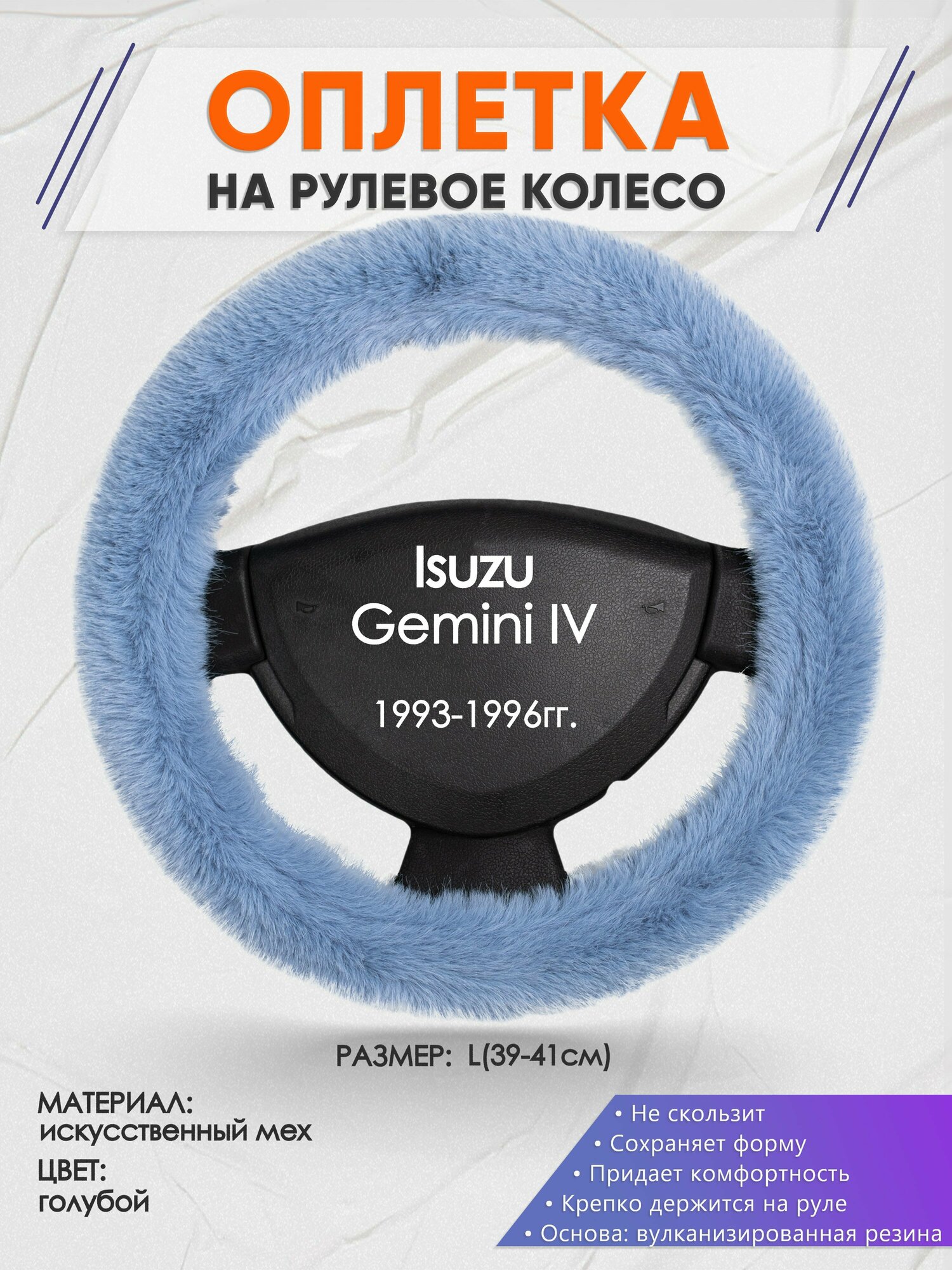 Оплетка на руль для Isuzu Gemini 4(Исузу гемини) 1993-1996, L(39-41см), Искусственный мех 41