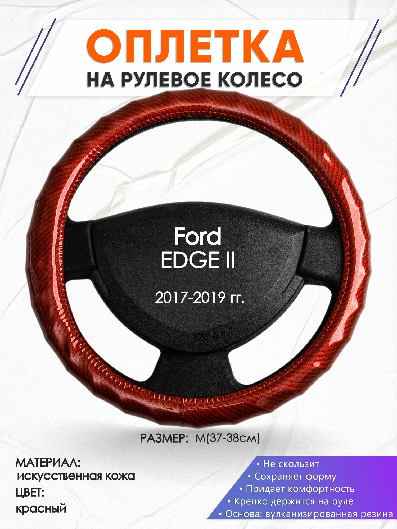 Оплетка наруль для Ford EDGE II(Форд Эдж 2) 2017-2019 годов выпуска, размер M(37-38см), Искусственная кожа 80