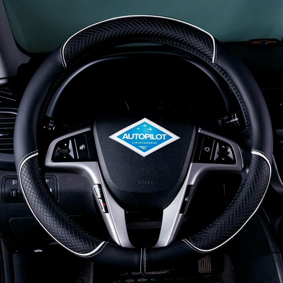 Купить Оплетка на руль Лада Веста (2022 - 2024) седан / LADA (ВАЗ) Vesta, Экокожа, (накидка / чехол на руль) Черный и белый кант