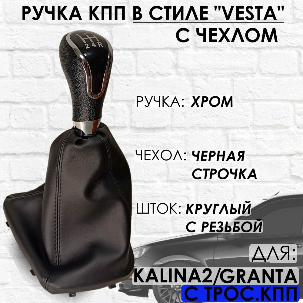 Купить Ручка КПП с чехлом для Granta/Kalina 2/Datsun, c 2013 г. в, "Веста стиль", (Хром/черная строчка)