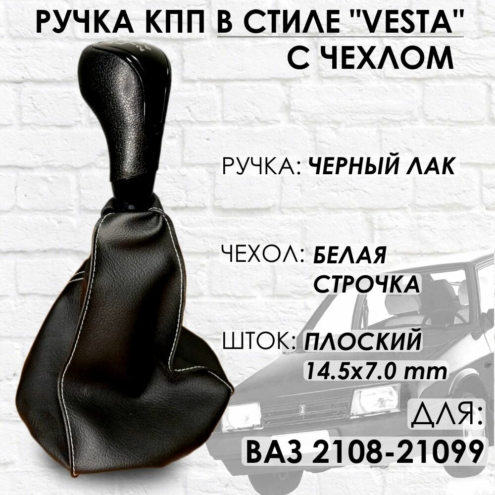 Купить Ручка КПП с чехлом ВАЗ 2108-21099 "Веста стиль" (Черный лак/белая строчка)