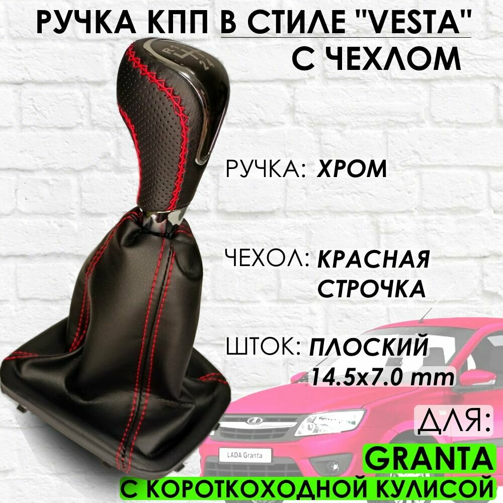 Купить Кожаная Ручка КПП Granta С короткоходной кулисой "Веста стиль" (Хром/красная строчка)