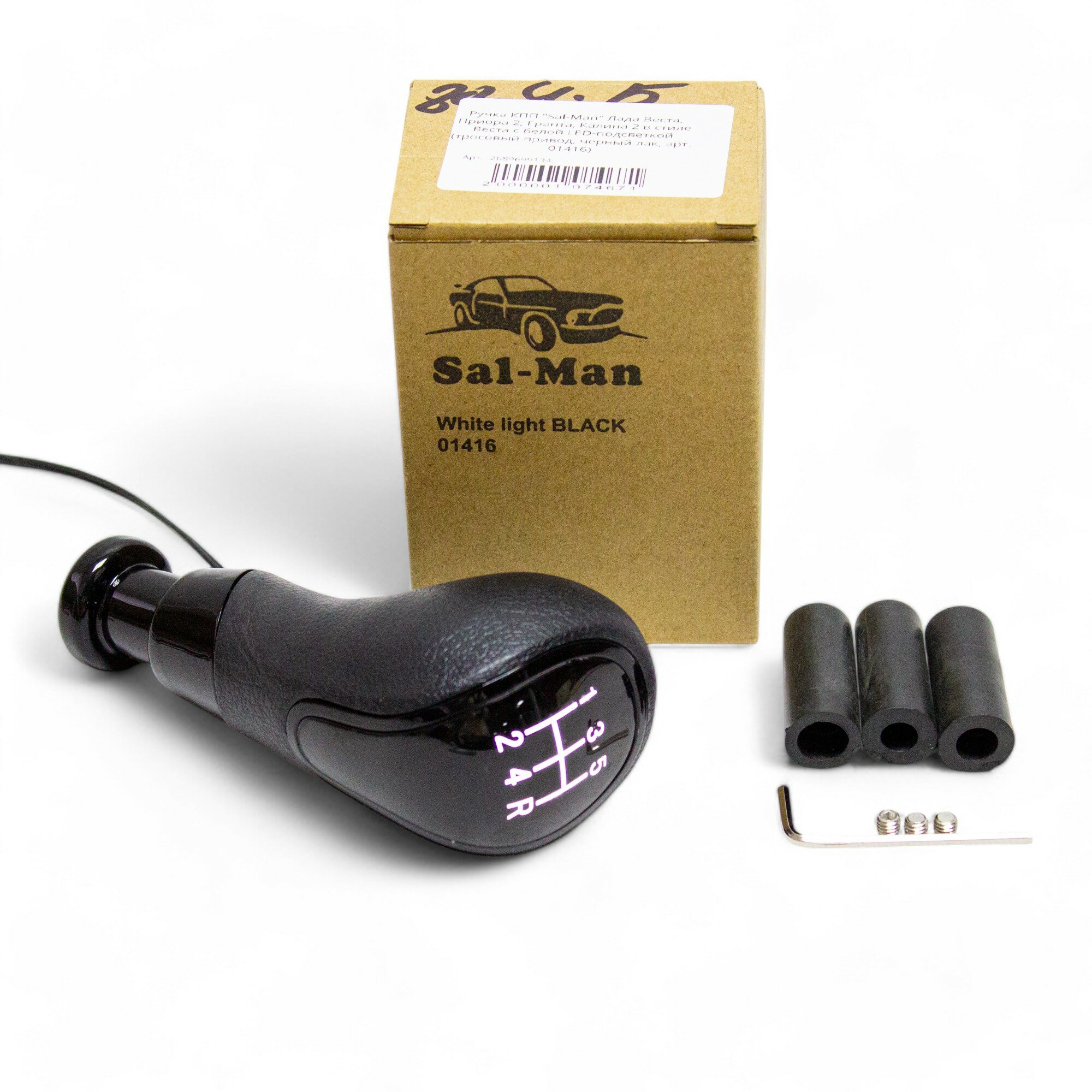 Ручка КПП белая LED подсветка Sal-Man в стиле Веста, рычажный привод, черный лак Лада Приора / ВАЗ 2113 2114 2115 / 2108 2109 21099 / 2110 2111 2112 арт.01420