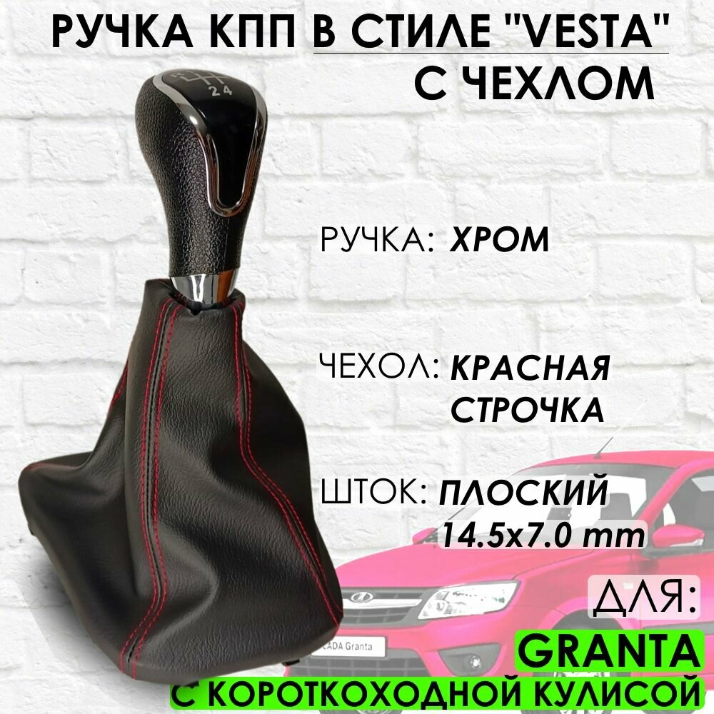 Купить Ручка КПП с чехлом для Granta С короткоходной кулисой "Веста стиль" (Хром/красная строчка)