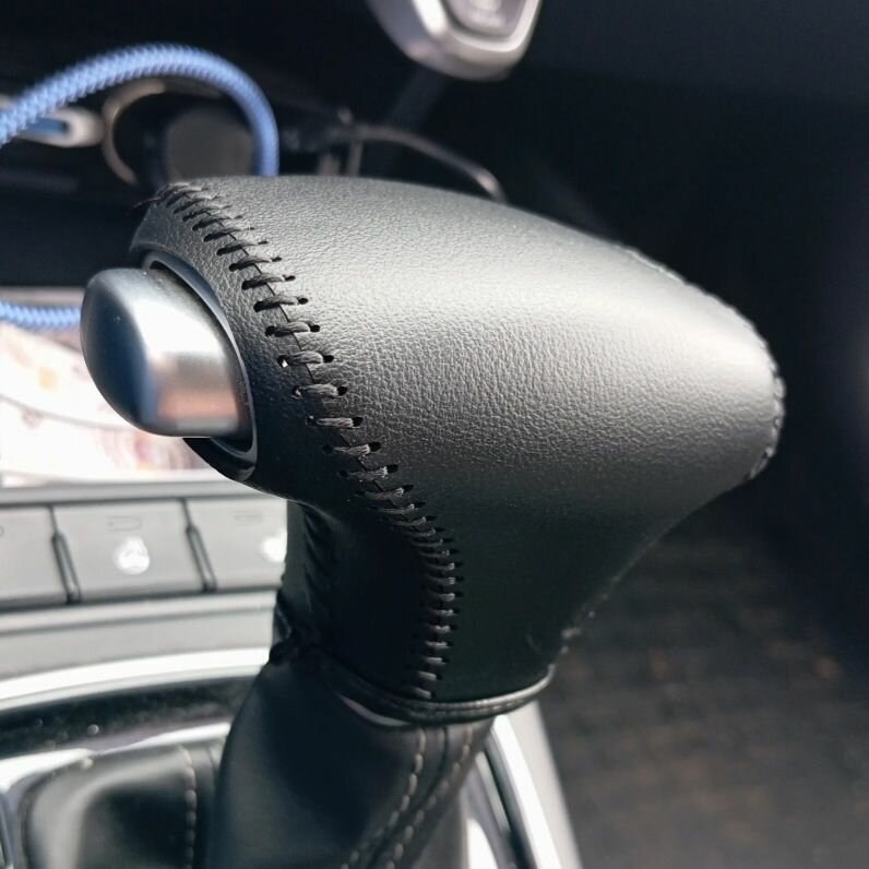 Чехол из натуральной кожи ручки АКПП Киа Рио 4 Kia Rio 4 2017-2023, Киа Рио X-Line Икслайн 2017-2020, Киа Рио 5 2020-2023. Черная нить. интересное: