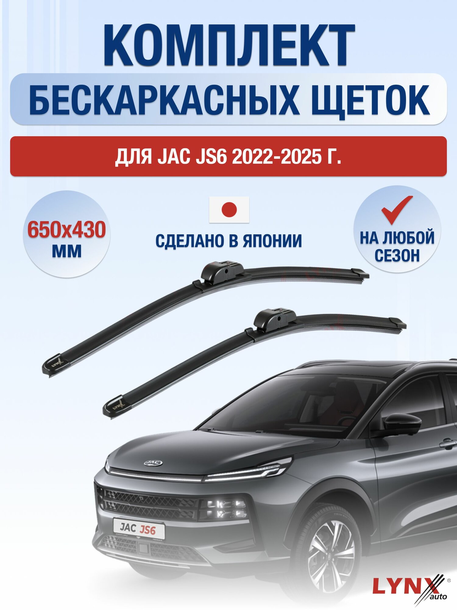 СохранитьЩетки стеклоочистителя для JAC JS6 / 2022-2025 / Комплект бескаркасных дворников 65 43 см Джак ЖС6 интересное: