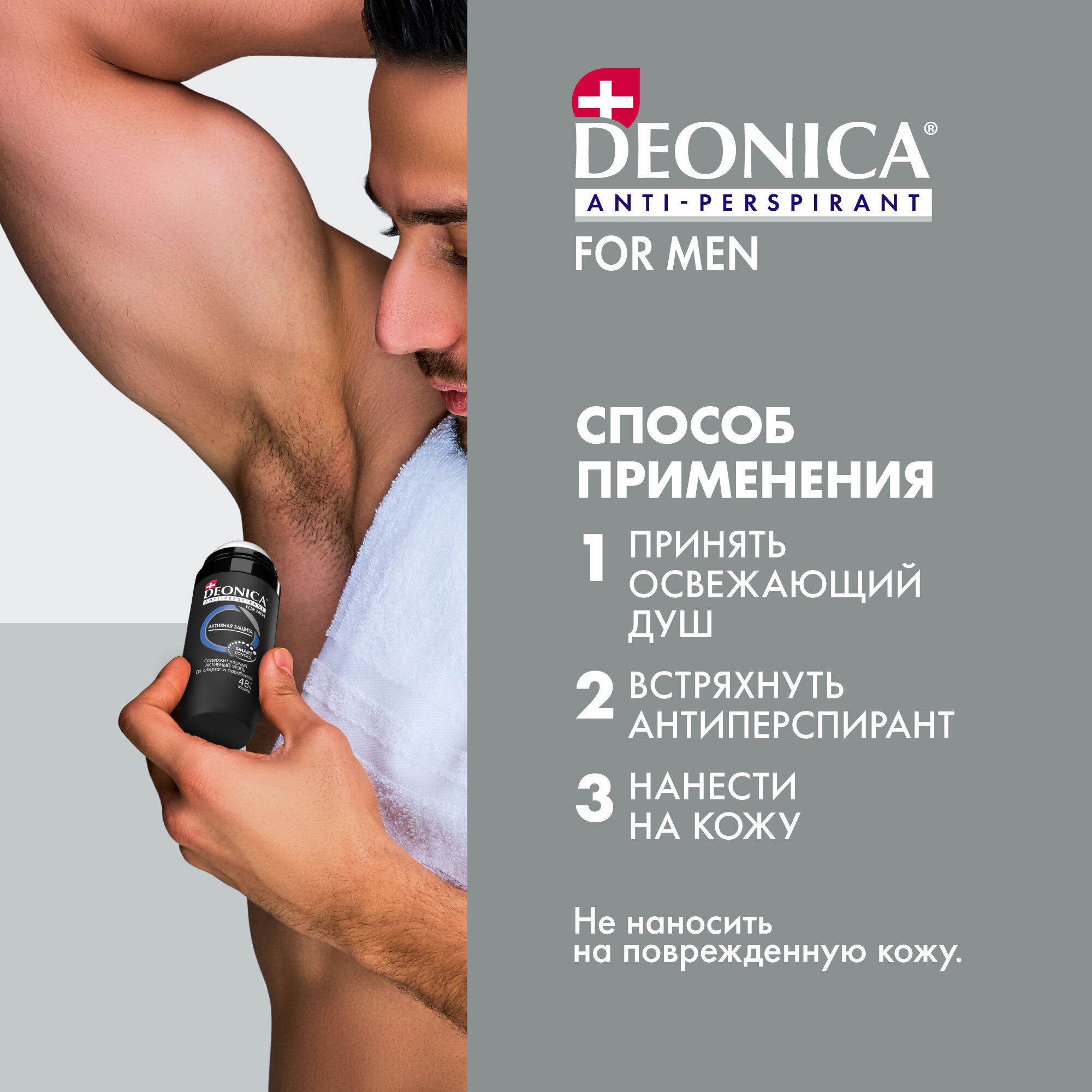 Дезодорант мужской антиперспирант Deonica For Men "Активная защита". Ролик, 50 мл. Содержит активный уголь, нейтрализующий бактерии. Не оставляет следов на одежде