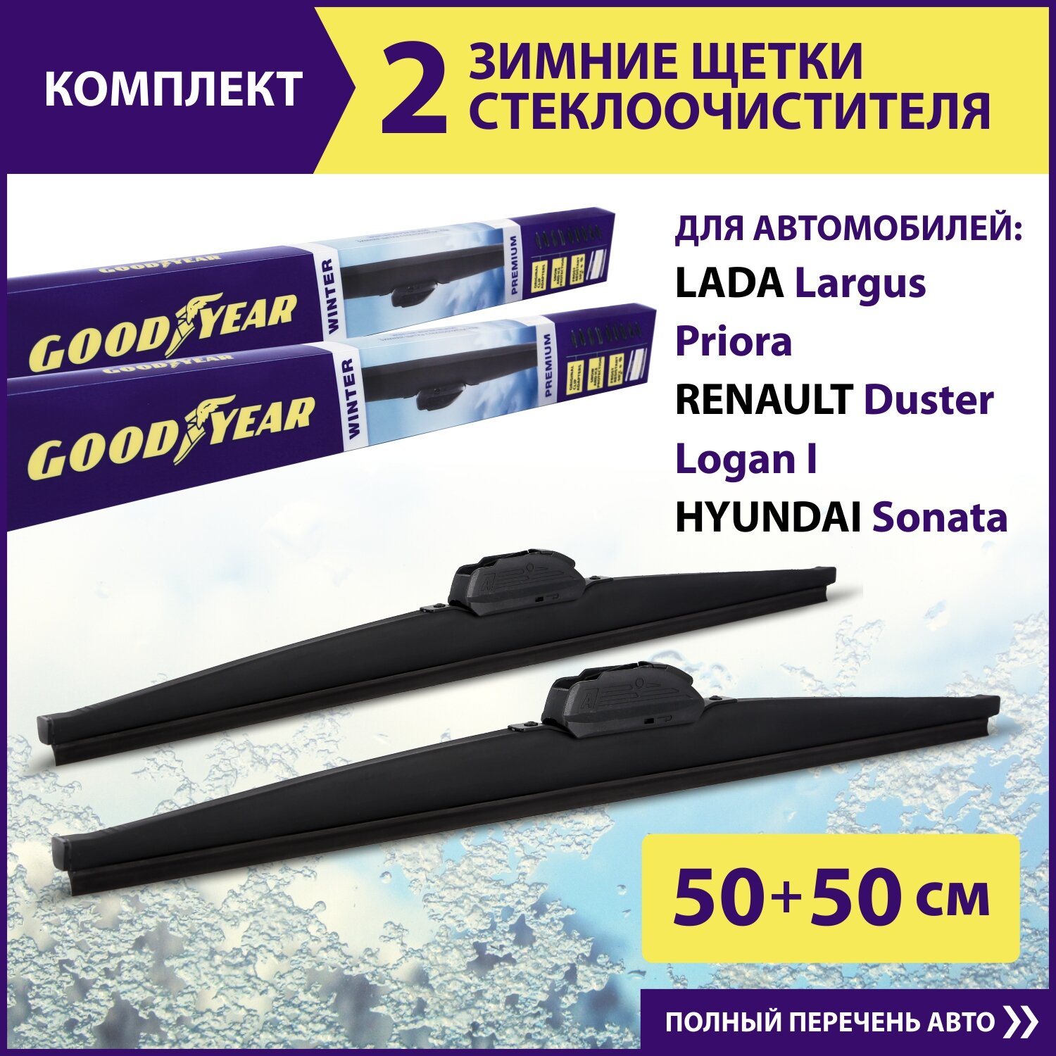 Купить 2 Щетки стеклоочистителя зимние 500 500 мм, Дворники для автомобиля GOODYEAR для Лада Ларгус Приора / RENAULT Duster, Logan 1 / HYUNDAI Sonata