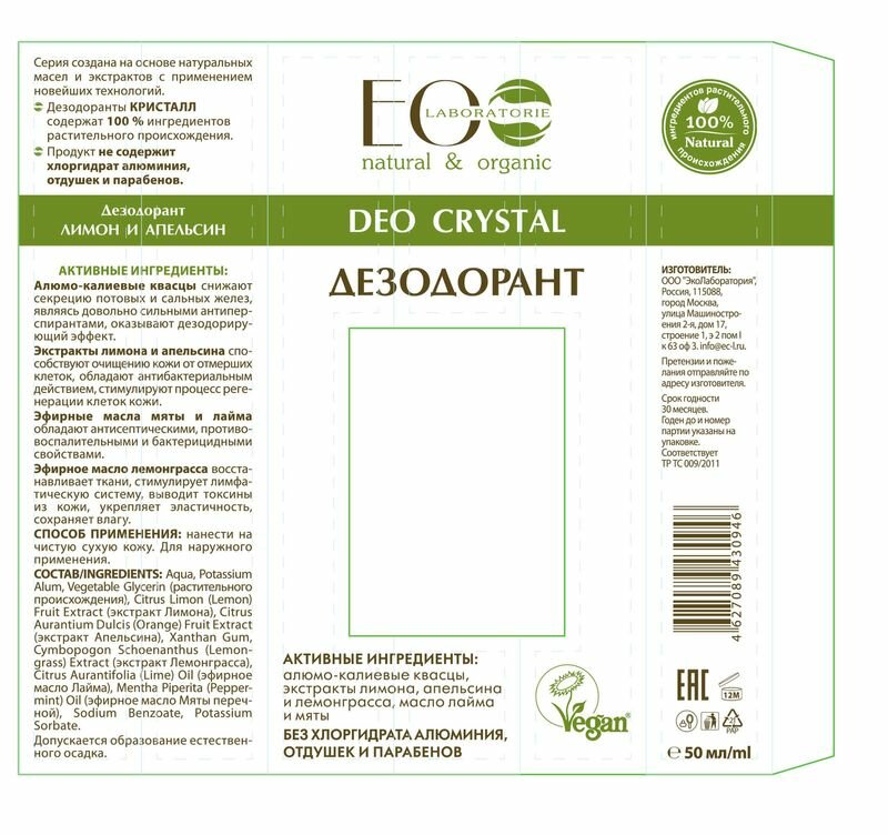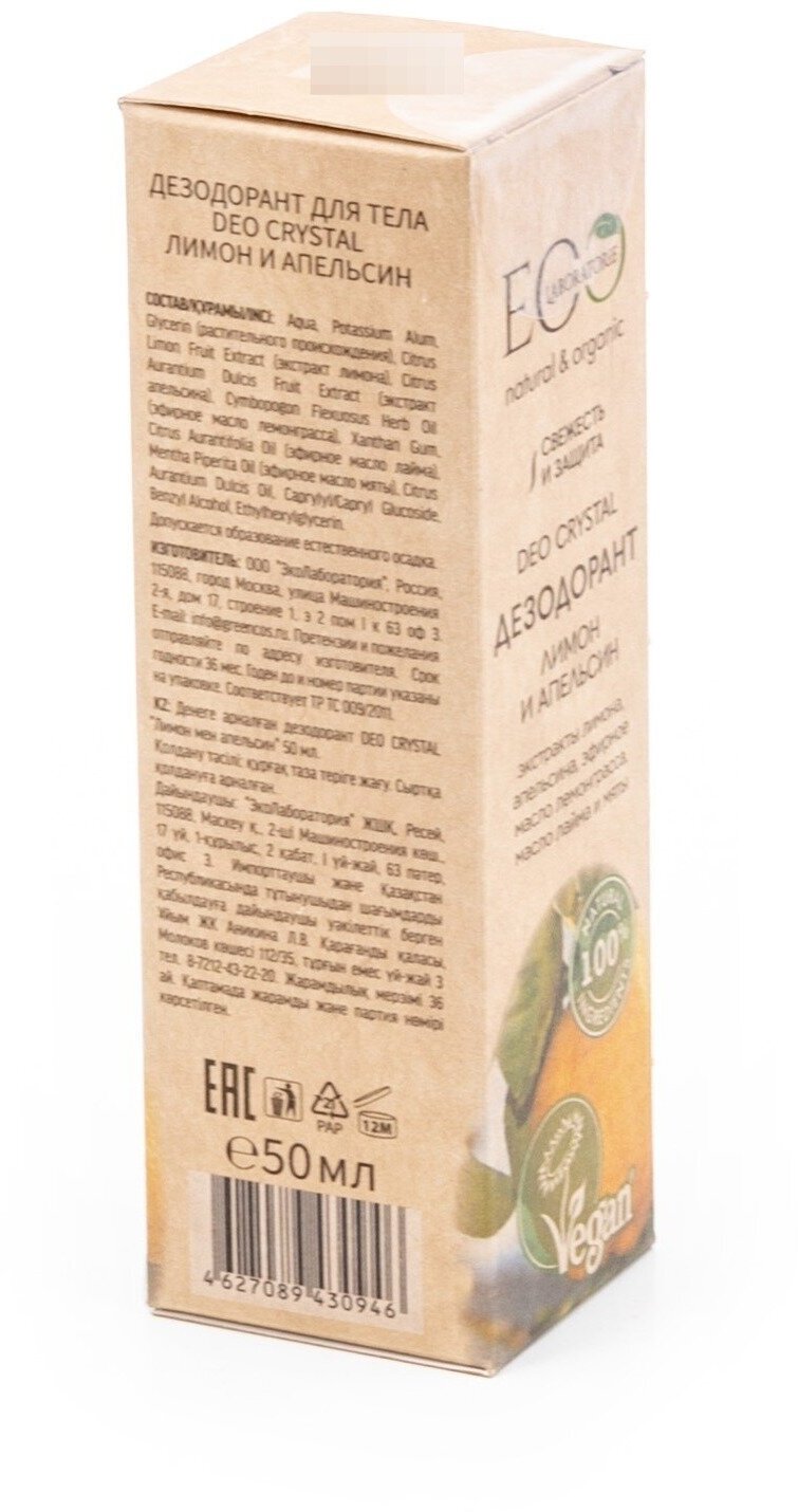 Купить гринкосм._eco lab._дез.deo crystal 50мл_лимон и апельсин 949033001