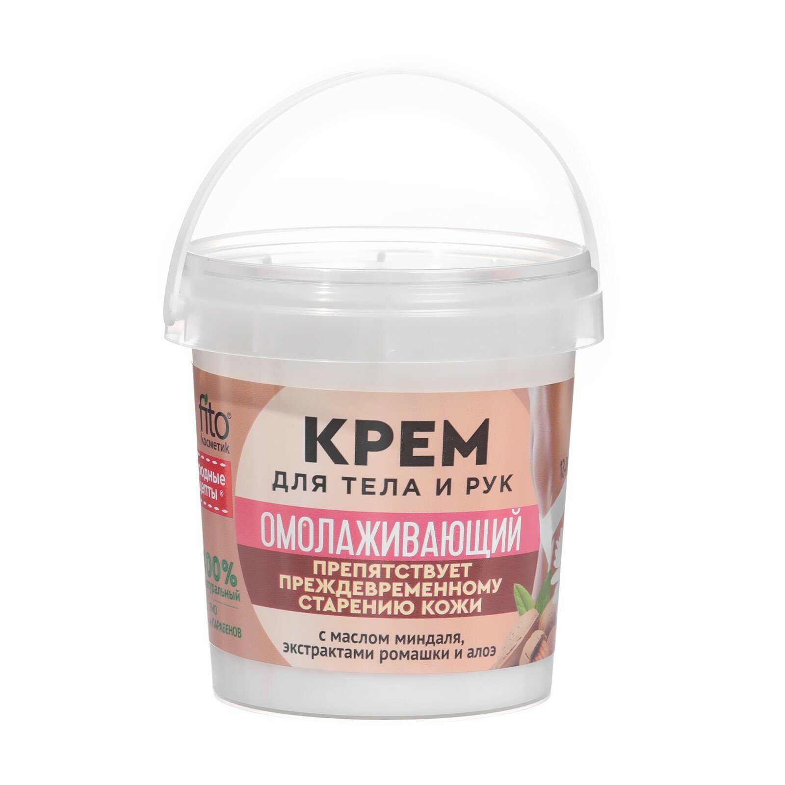 Fito косметик Крем для тела Народные рецепты Омолаживающий с маслом миндаля, экстрактами ромашки и алоэ, 155 мл