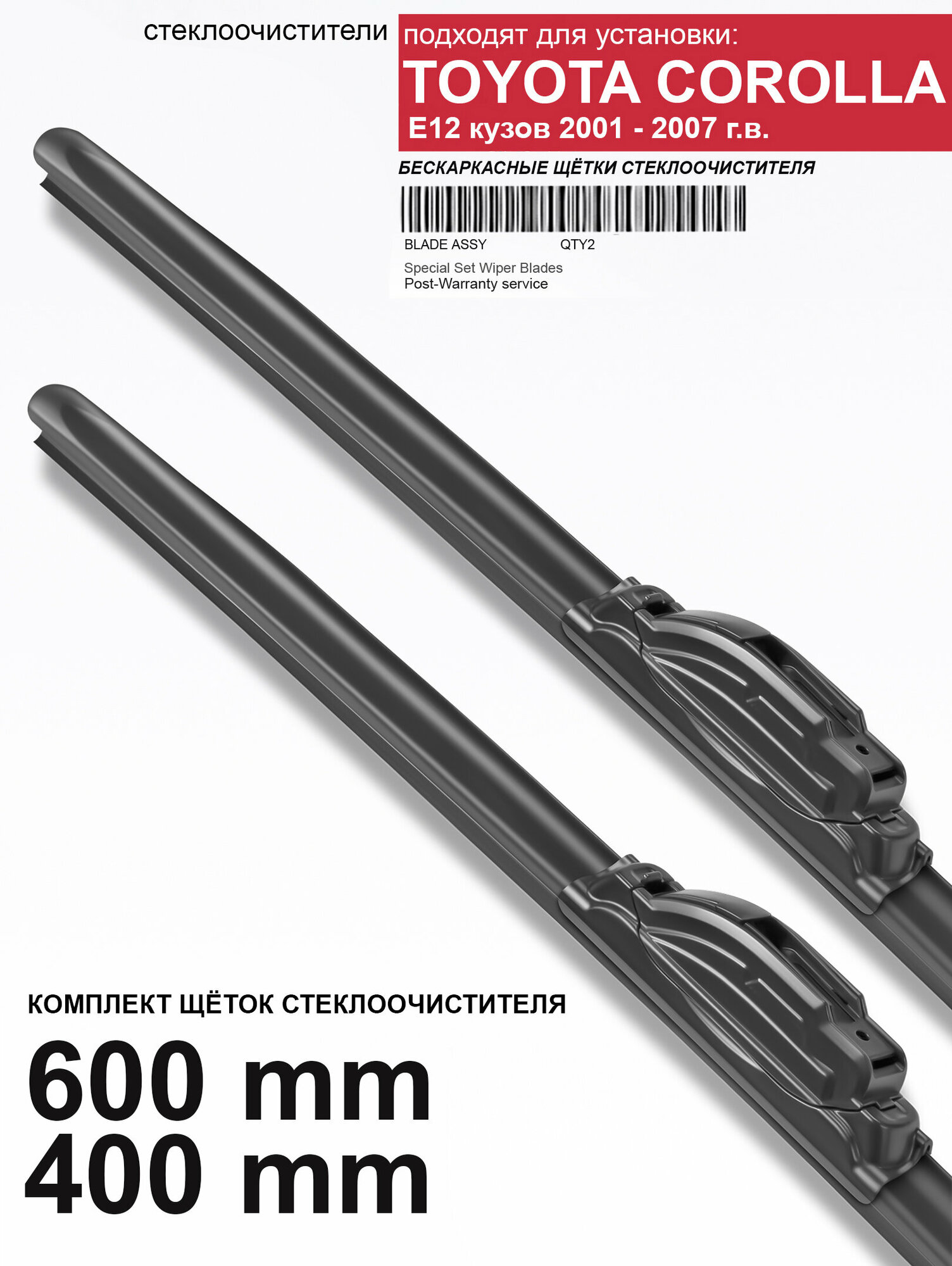 Купить Щетки стеклоочистителя для Toyota Corolla E12 пок. - бескаркасные дворники для Королла 120, 600 400 мм комплект.