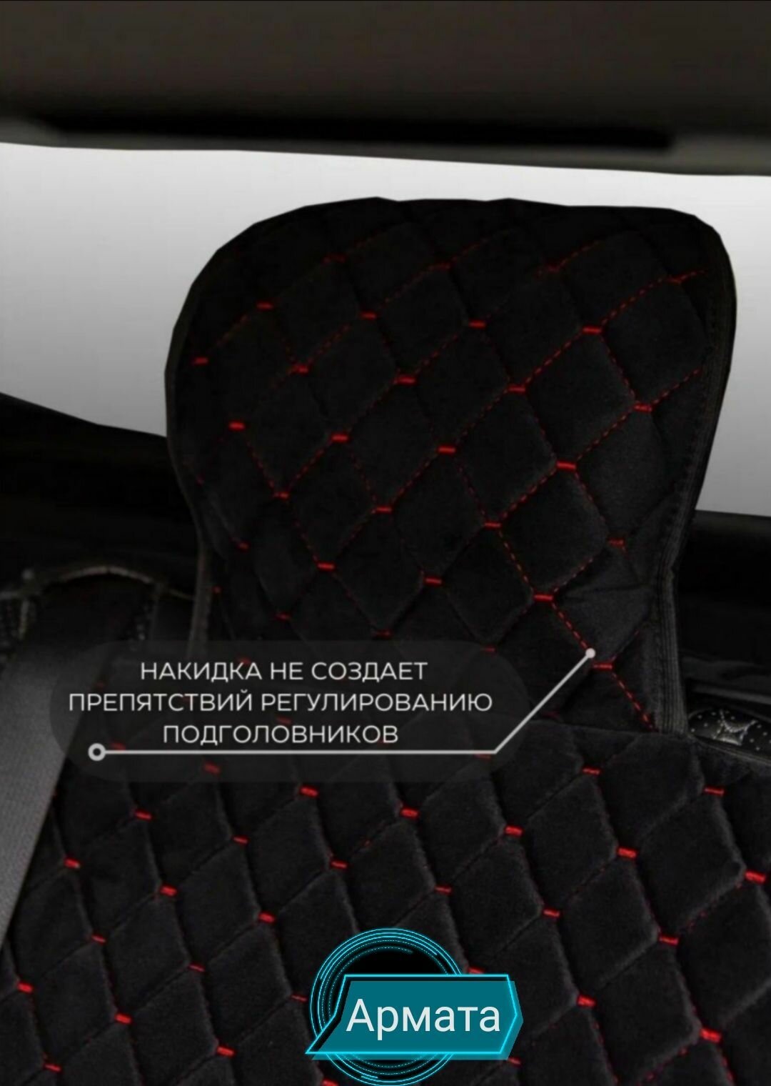 СохранитьНакидка на заднее сиденье автомобиля универсальная из велюра с боками. Ткань ромб черная, строчка красная /Подарок автомобилисту интересное: