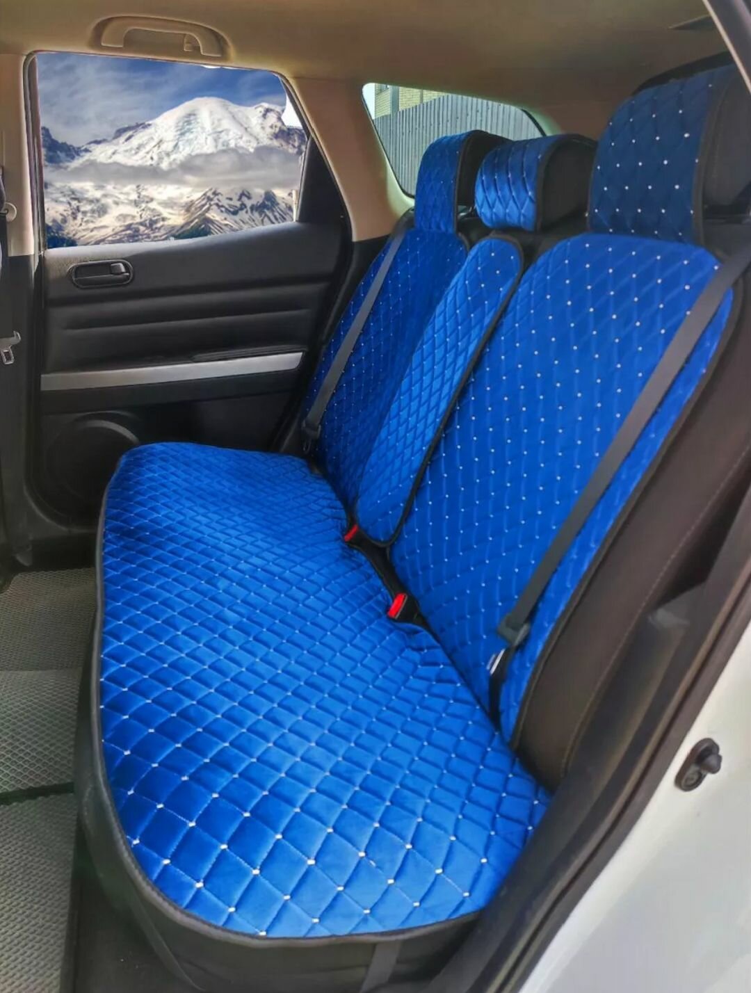 Накидки на задние сиденья автомобиля велюр синяя строчка / Ткань ромб задняя/Подарок автомобилисту