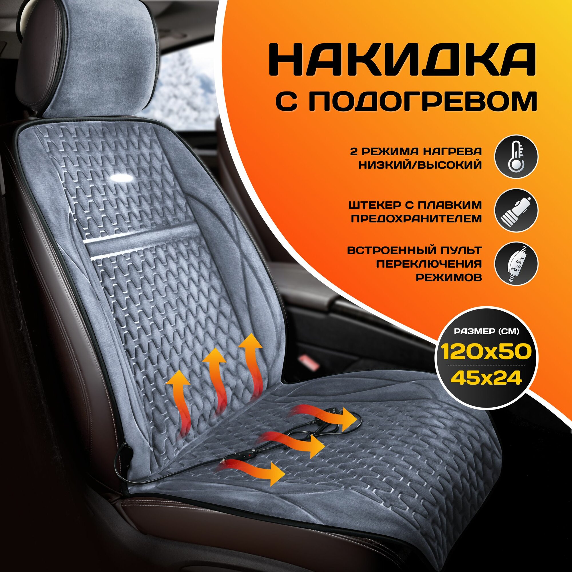 Накидка на переднее сиденье с подогревом PODOGREV II 2-х режимный FRONT цвет серый (1 шт.)