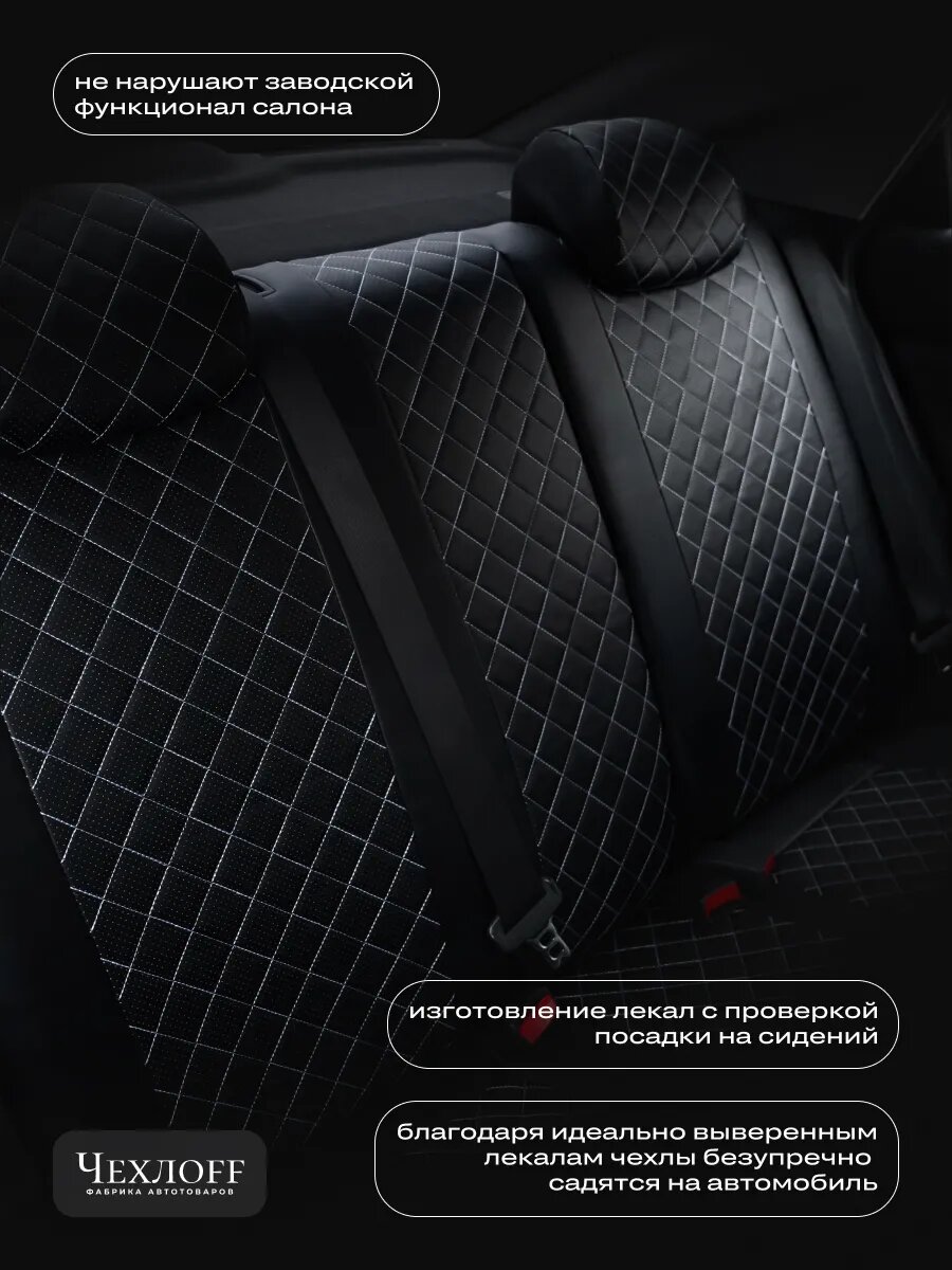 Чехлы ЧехлоFF для LADA Granta Гранта, экокожа, чёрно-белый, передние/задние, комплектка интересное: