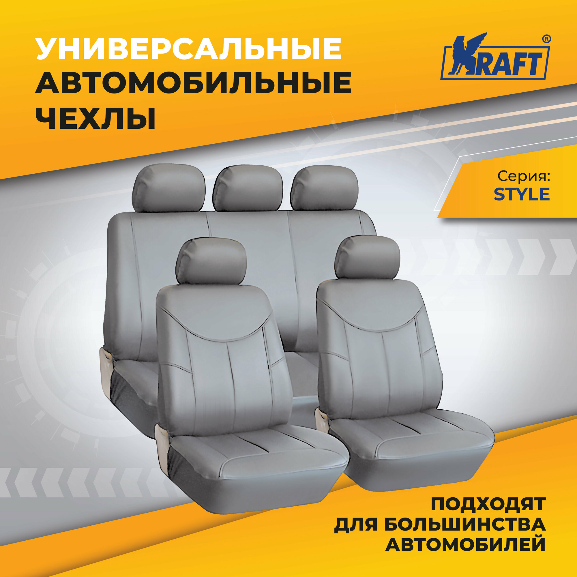Купить Чехлы универсальные на автомобильные сиденья, комплект"STYLE", экокожа, серые