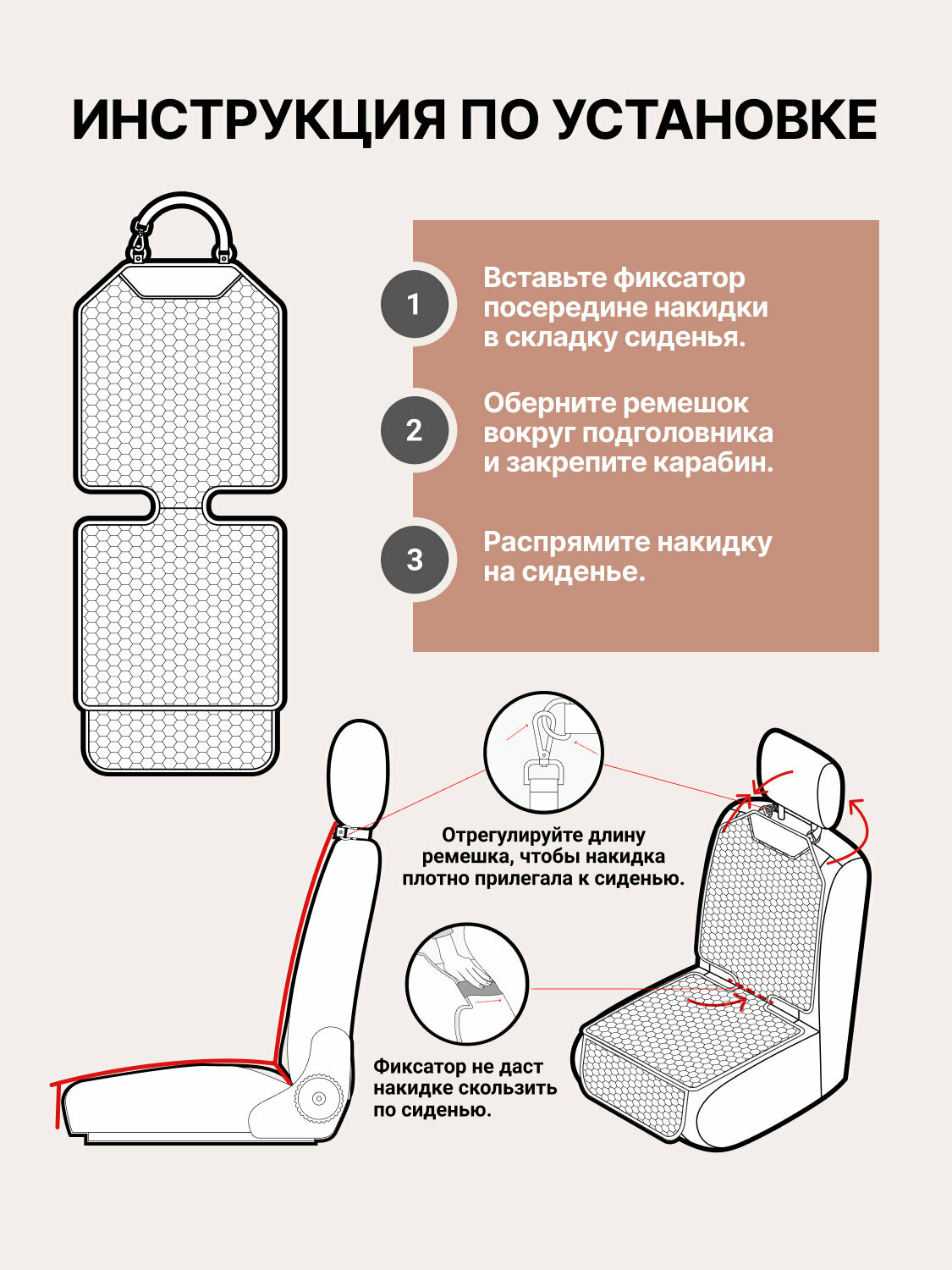 Накидка на сиденье автомобиля Owlee, премиум экокожа, коричневый, 1 шт