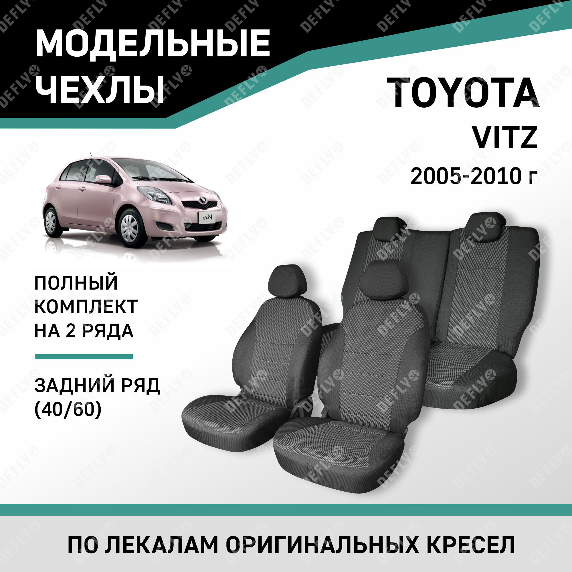Модельные чехлы на сиденья Defly Toyota Vitz 2005-2010 жаккард задний ряд 40/60 интересное:
