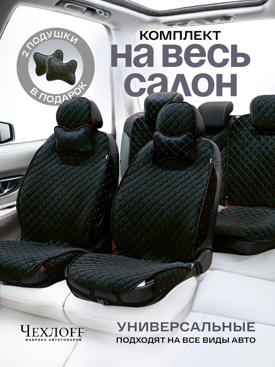 Купить Чехлы универсальные на весь салон в машину от ЧехлоFF, велюр, на передние и задние сиденья, 135x50 см, чёрный, синий