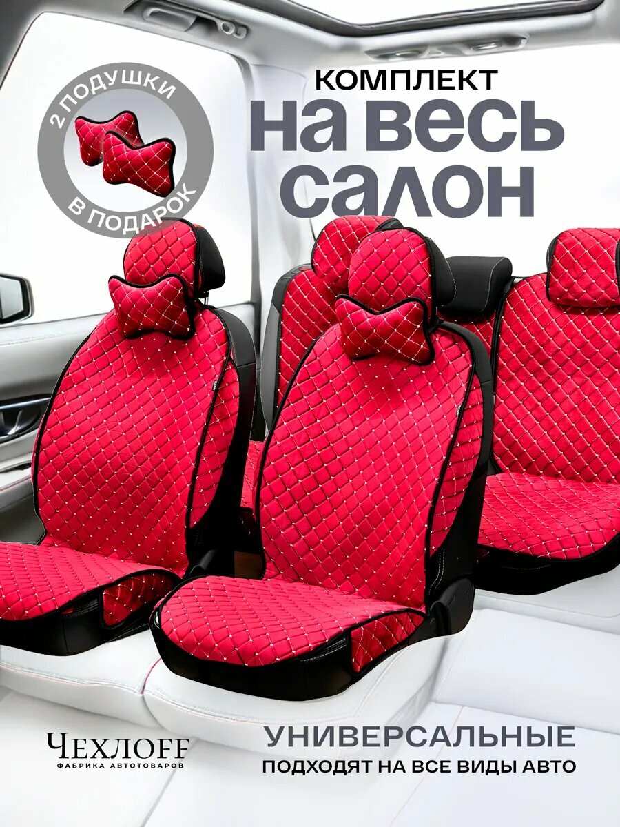 Купить Чехлы универсальные на весь салон в машину от ЧехлоFF, велюр, на передние и задние сиденья, 135x50 см, красный