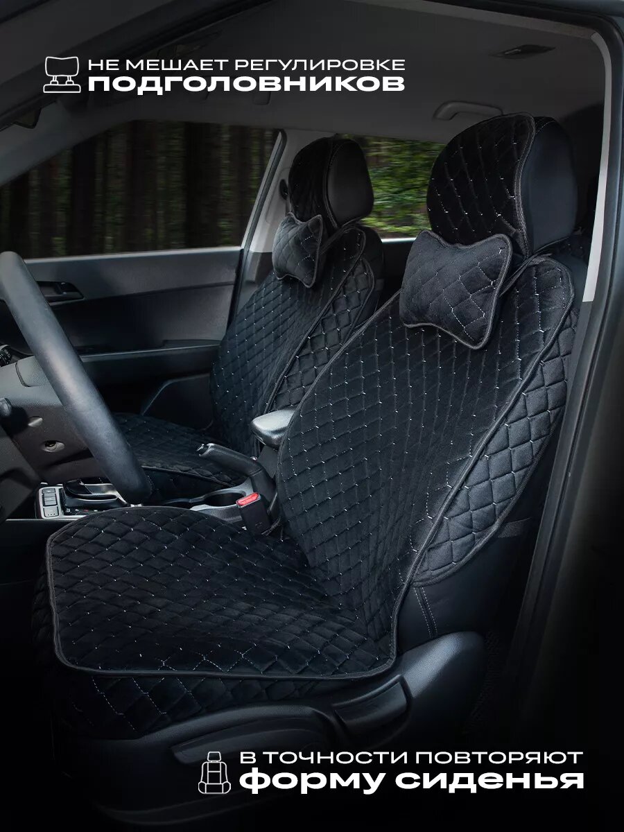 Чехлы универсальные на весь салон в машину от ЧехлоFF, велюр, на передние и задние сиденья, 135x50 см, чёрные