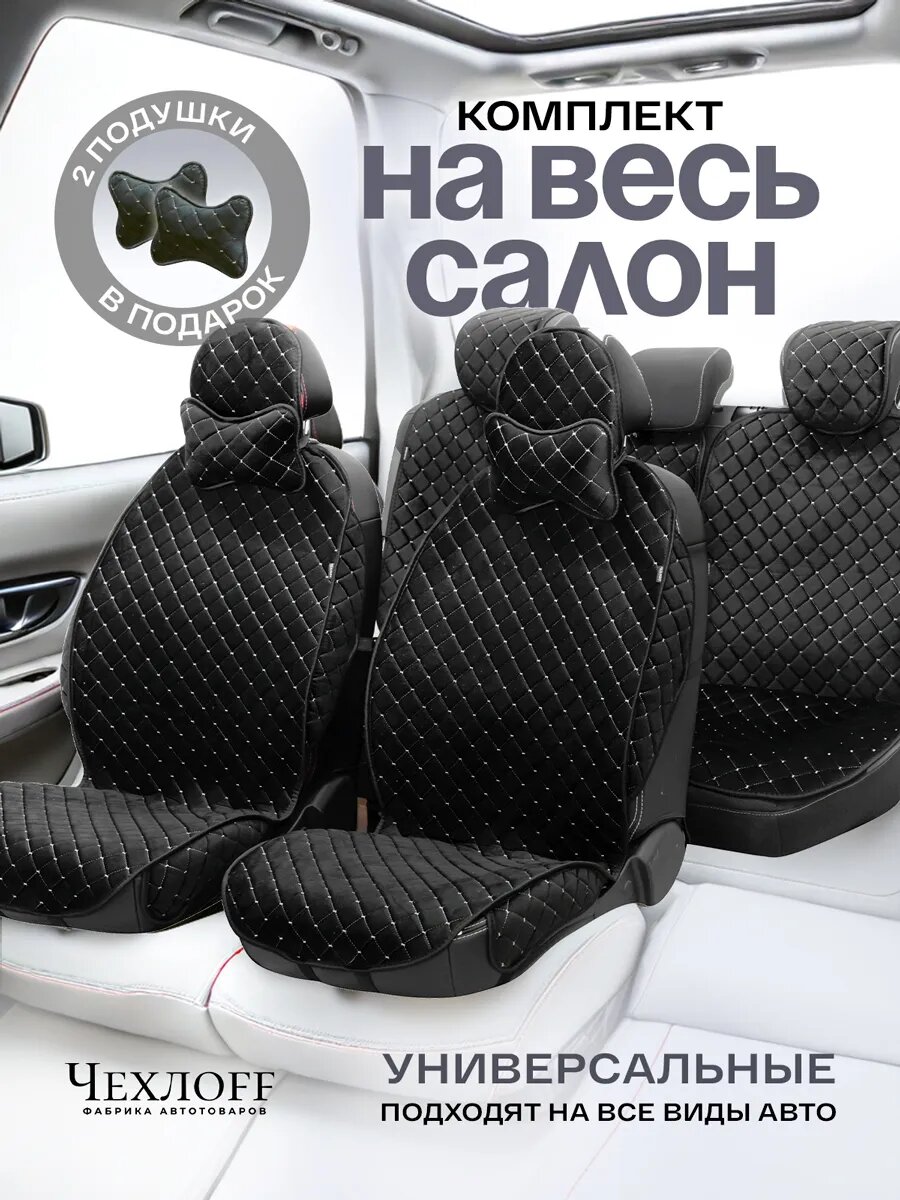 СохранитьЧехлы универсальные на весь салон в машину от ЧехлоFF, велюр, на передние и задние сиденья, 135x50 см, чёрный, белый интересное: