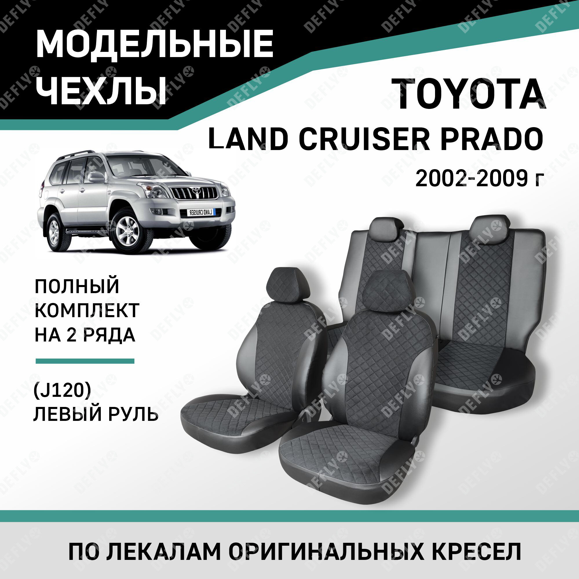 Купить Модельные чехлы на сиденья Defly Toyota Land Cruiser Prado 2002-2009 Экокожа и замша левый руль