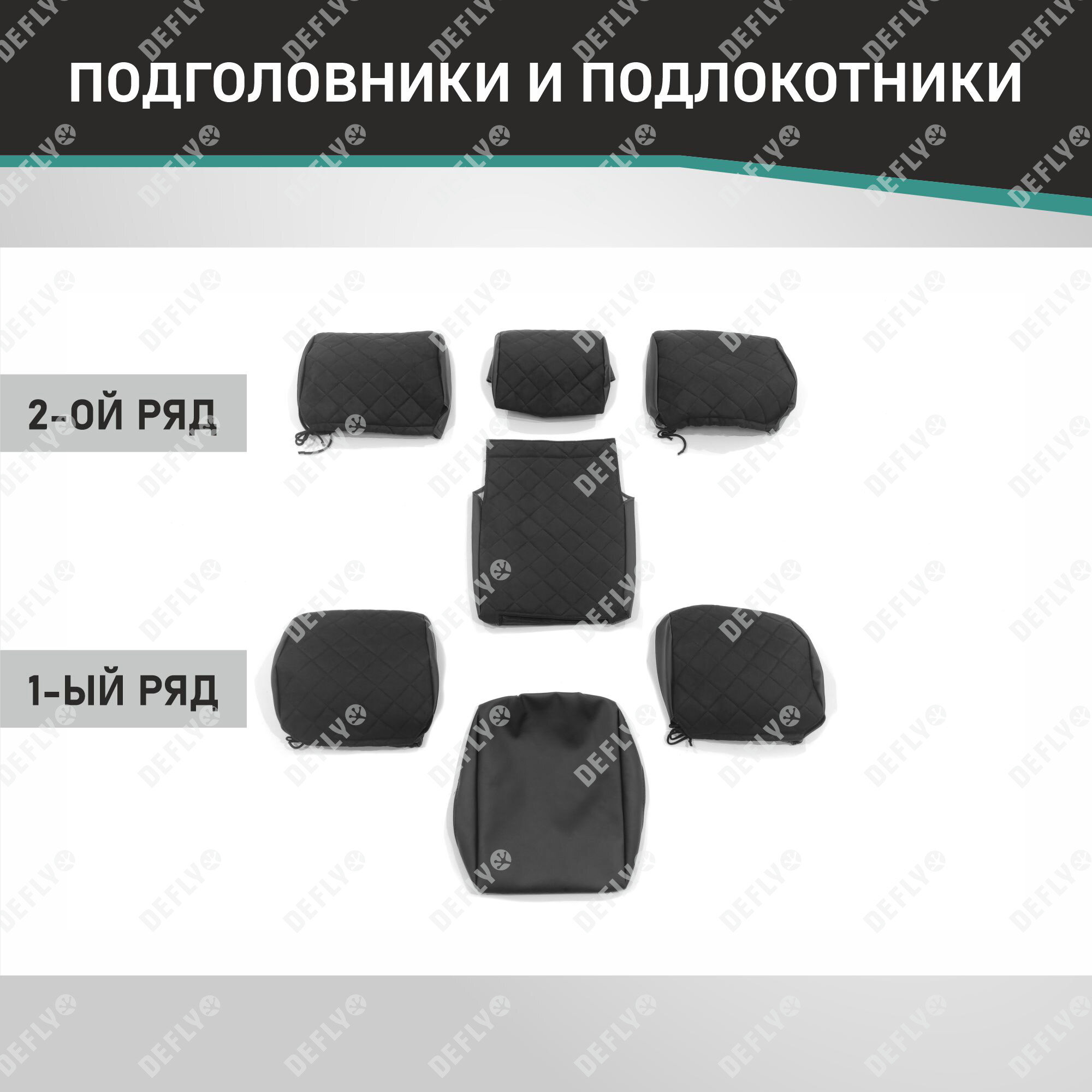 | Подробная комплектация | Передний ряд: 1. Спинка левая - 1 шт. 2. Спинка правая - 1 шт. 3. Сиденье - 2 шт. 4. Подголовник - 2 шт. Задний ряд:. 5. Спинка малая - 1 шт. 6. Спинка большая - 1 шт. 7. Сиденье малое - 1 шт. 8. Сиденье большое - 1 шт. 9. Подголовник - 2 шт. 10. Подголовник центральный - 1 шт. Всего изделий: 13 шт. |