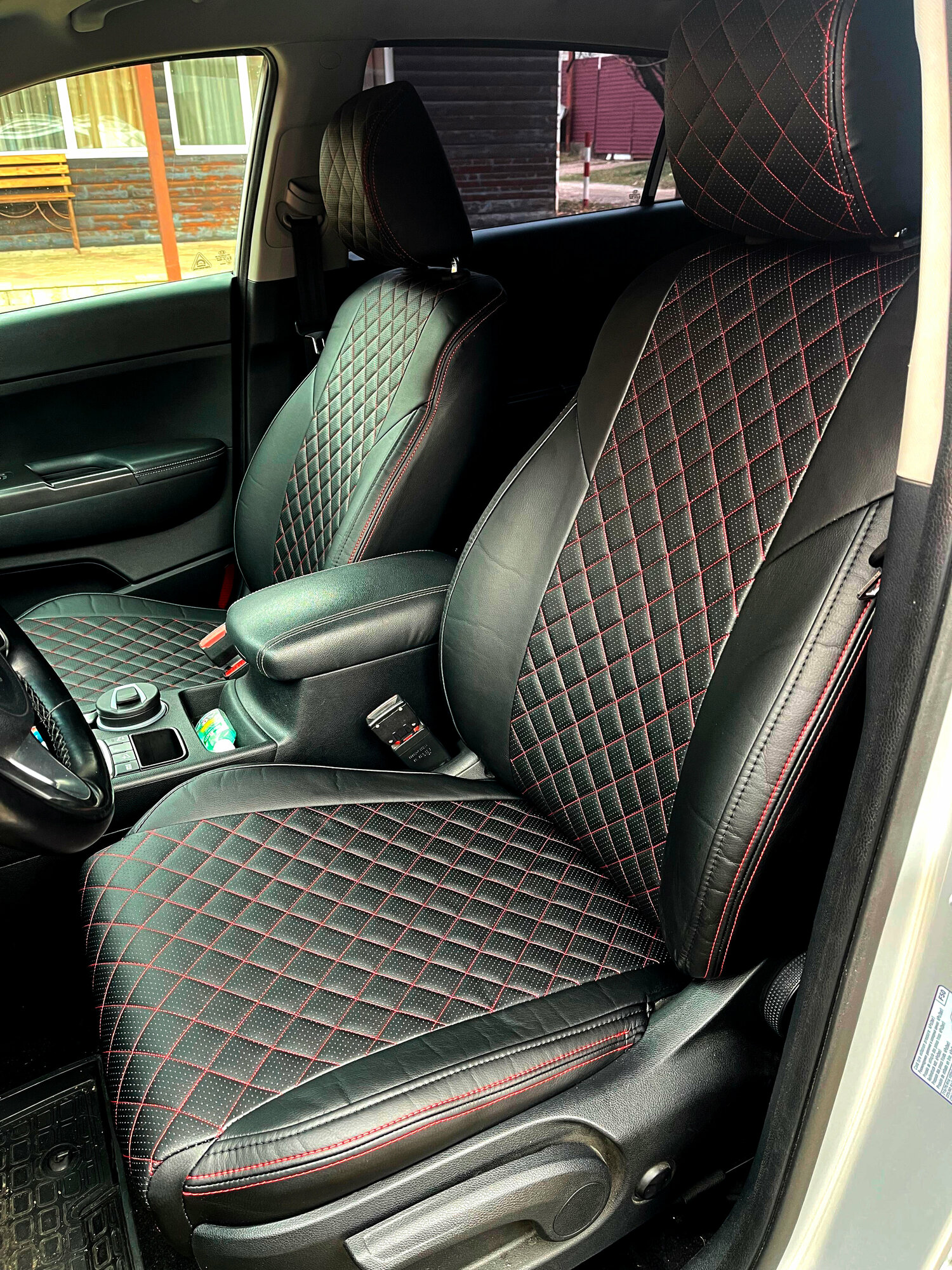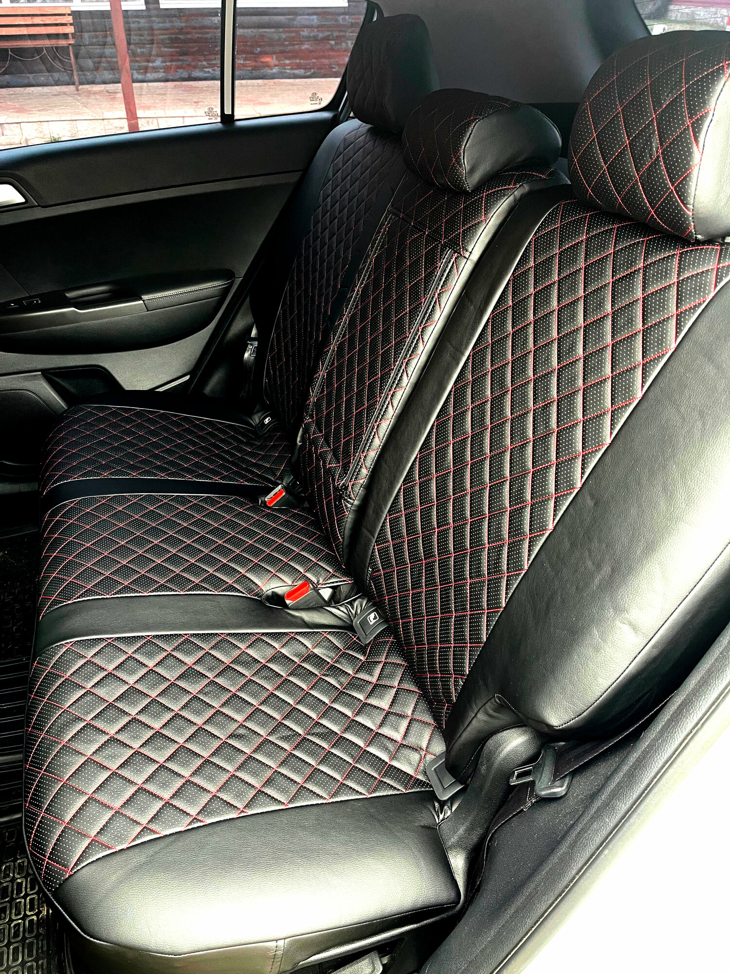 Чехлы Автопилот для Kia Sportage IV с 16-22г. Экокожа, ромб, черный, красная строчка. интересное: